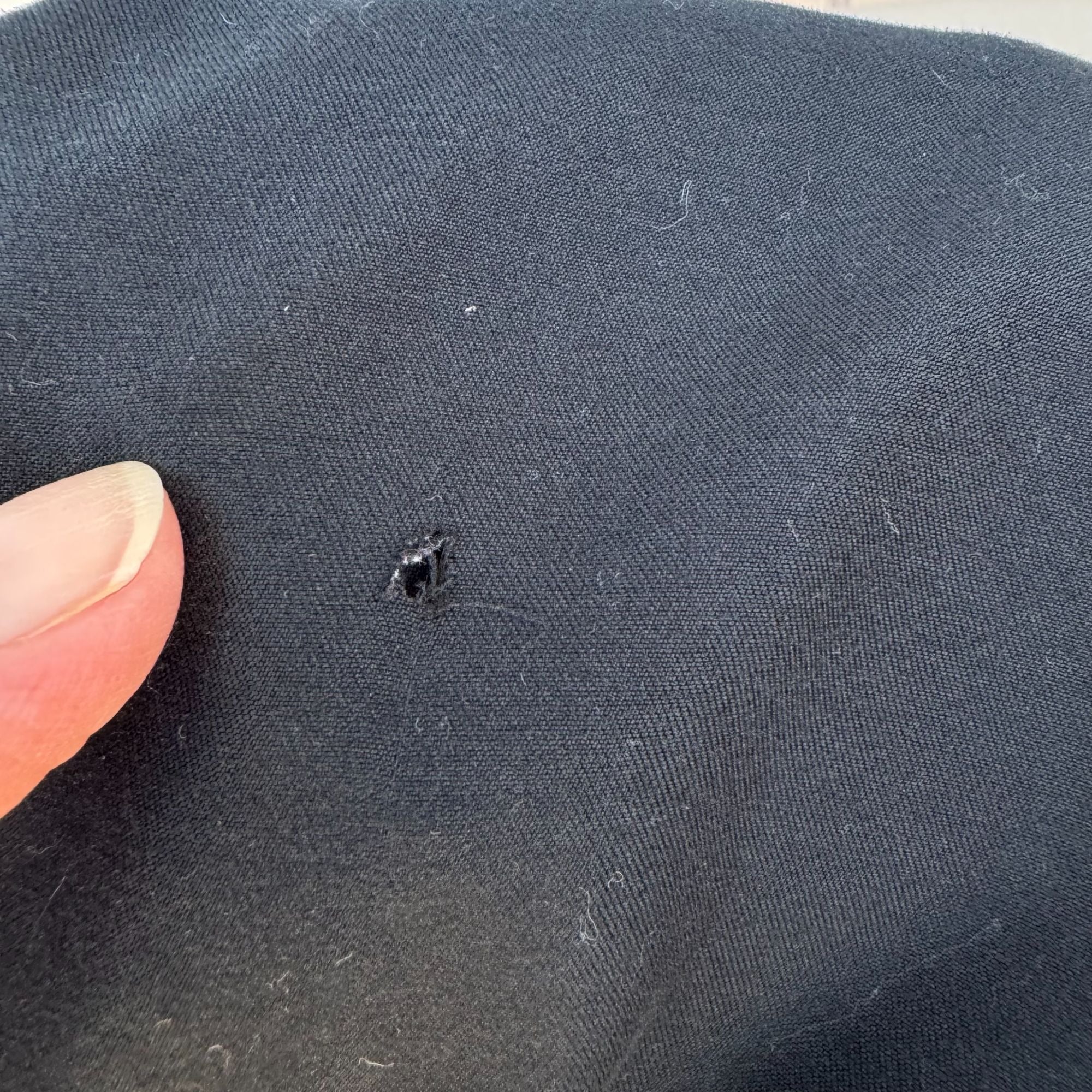 Small hole on the fabric as shown in photo.