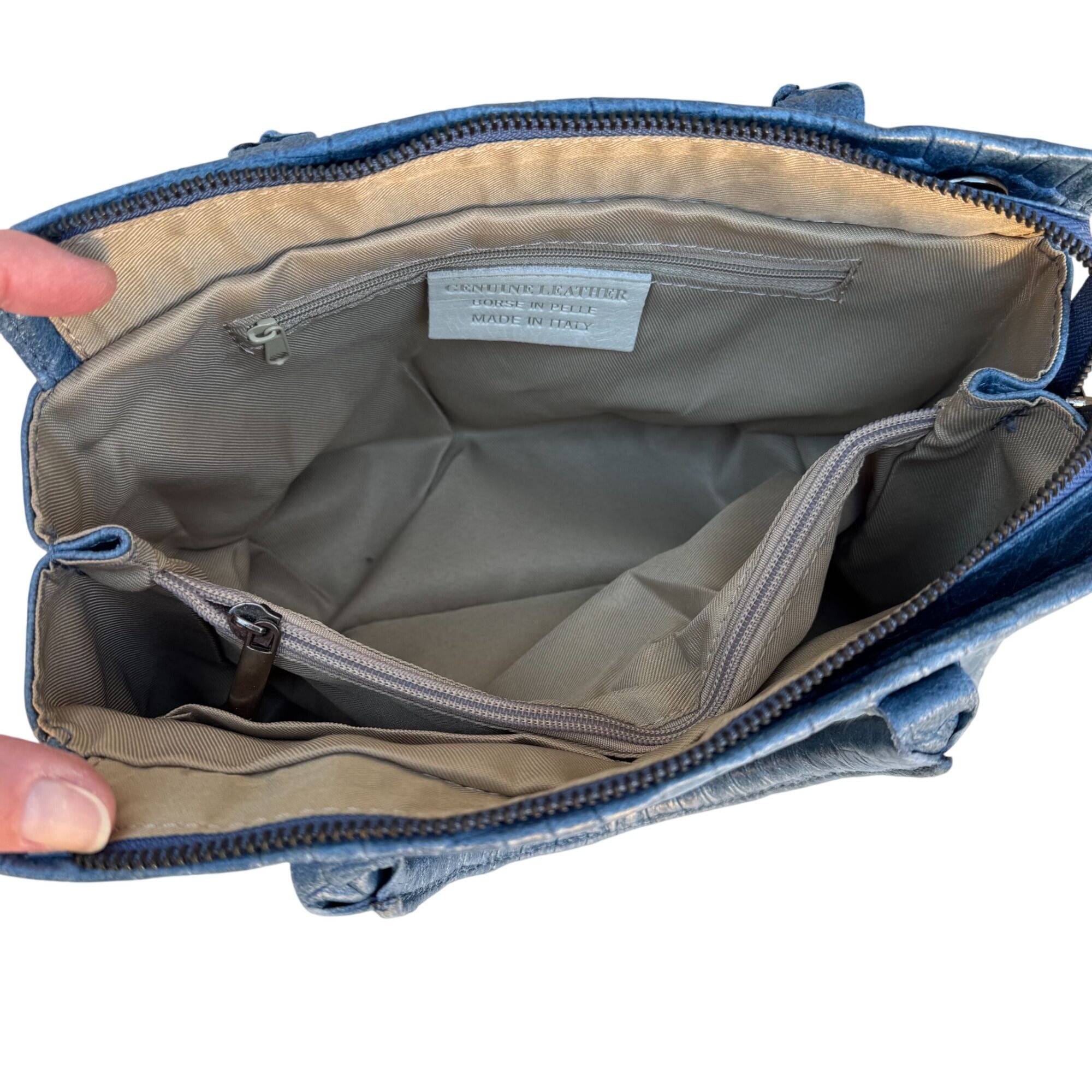 Genuine Italian Leather Croc Embossed Blue Luxury Bag Adjustable Removable Strap