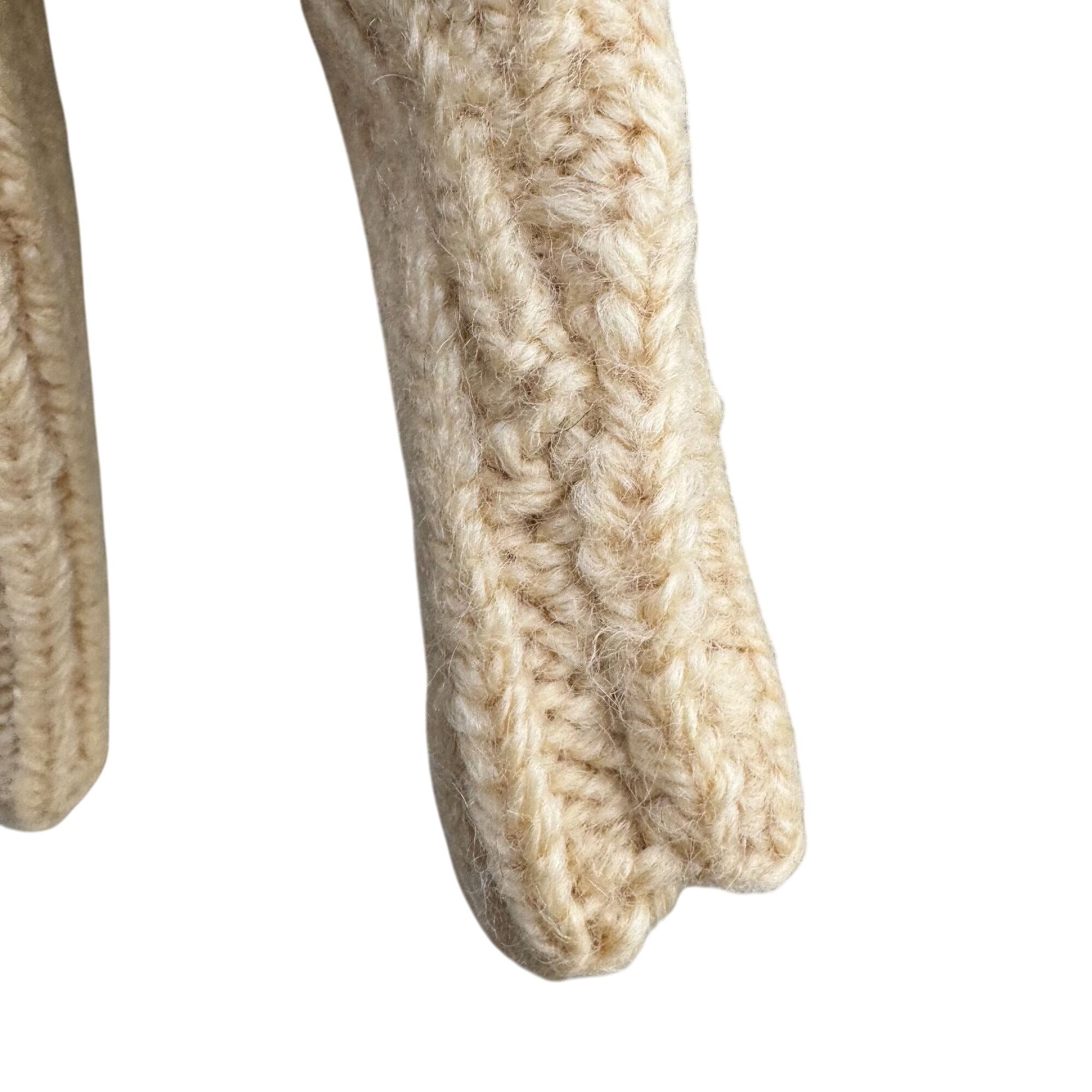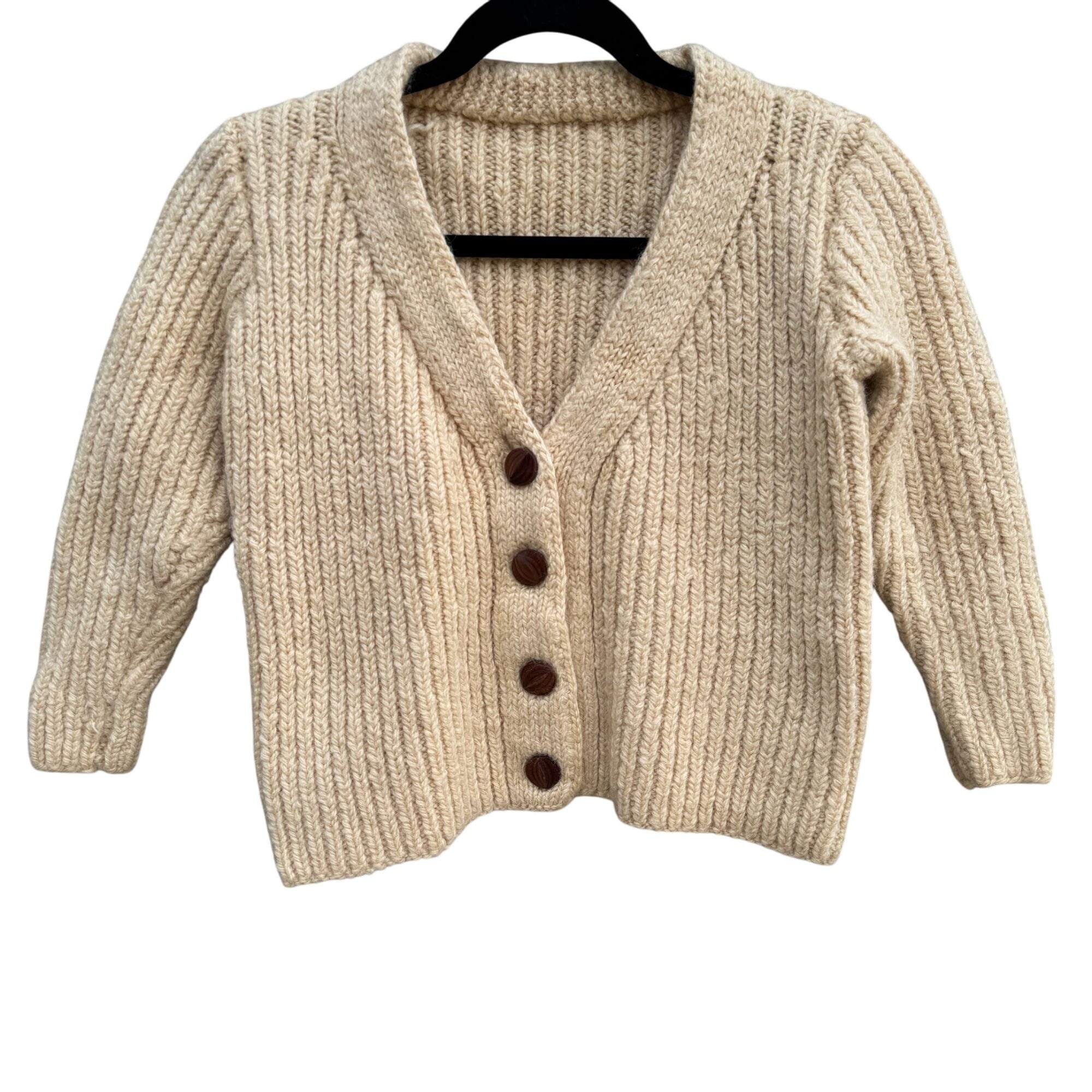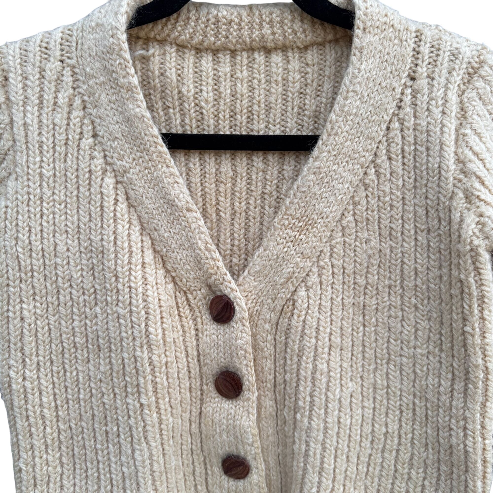 Handmade Vintage Womens Cream Wool Cropped Knit Wooden Button Cardigan Sweater S