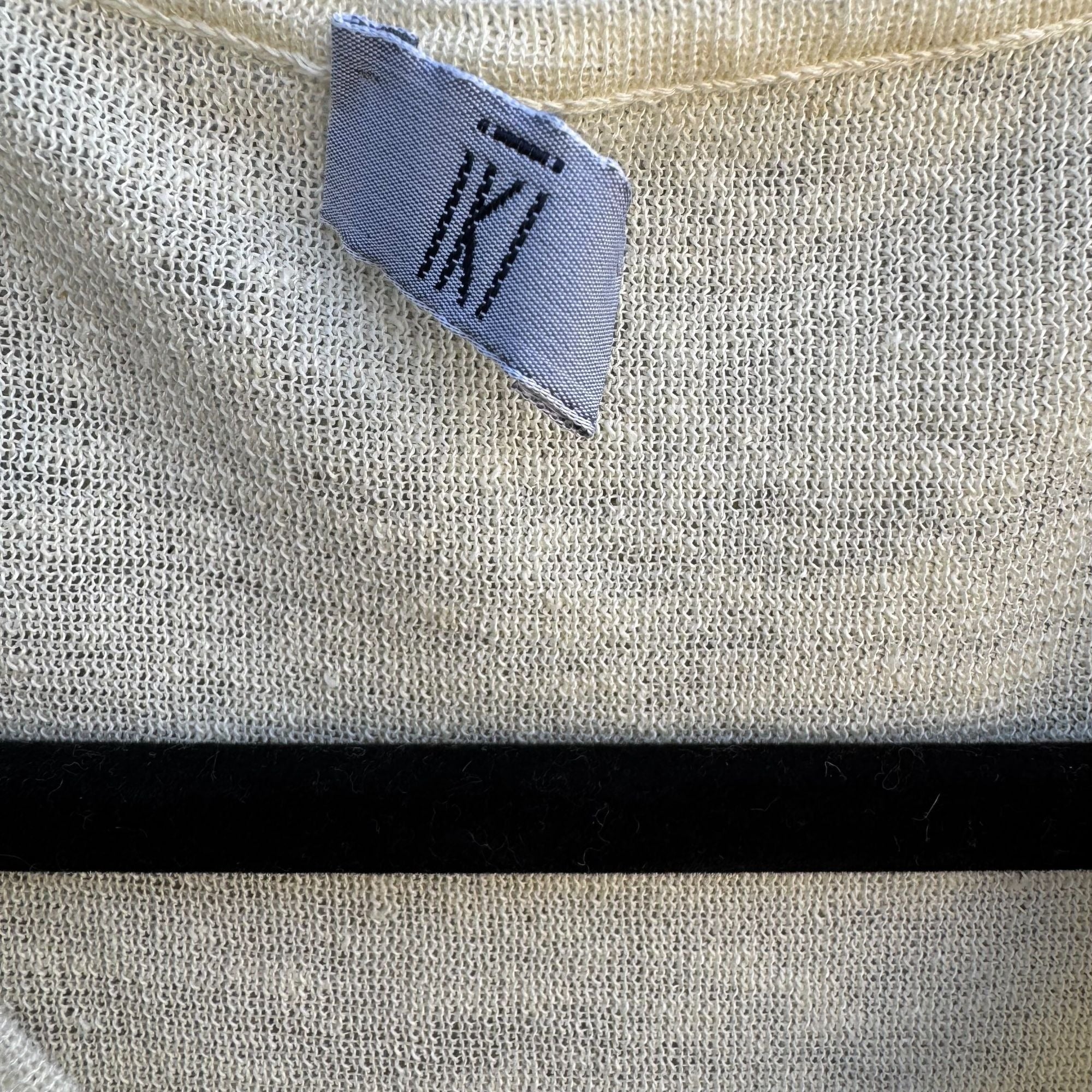 IKI Womens Cream V-Neck Lightweight Italian Linen Knit 3/4 Sleeve Pullover Top L