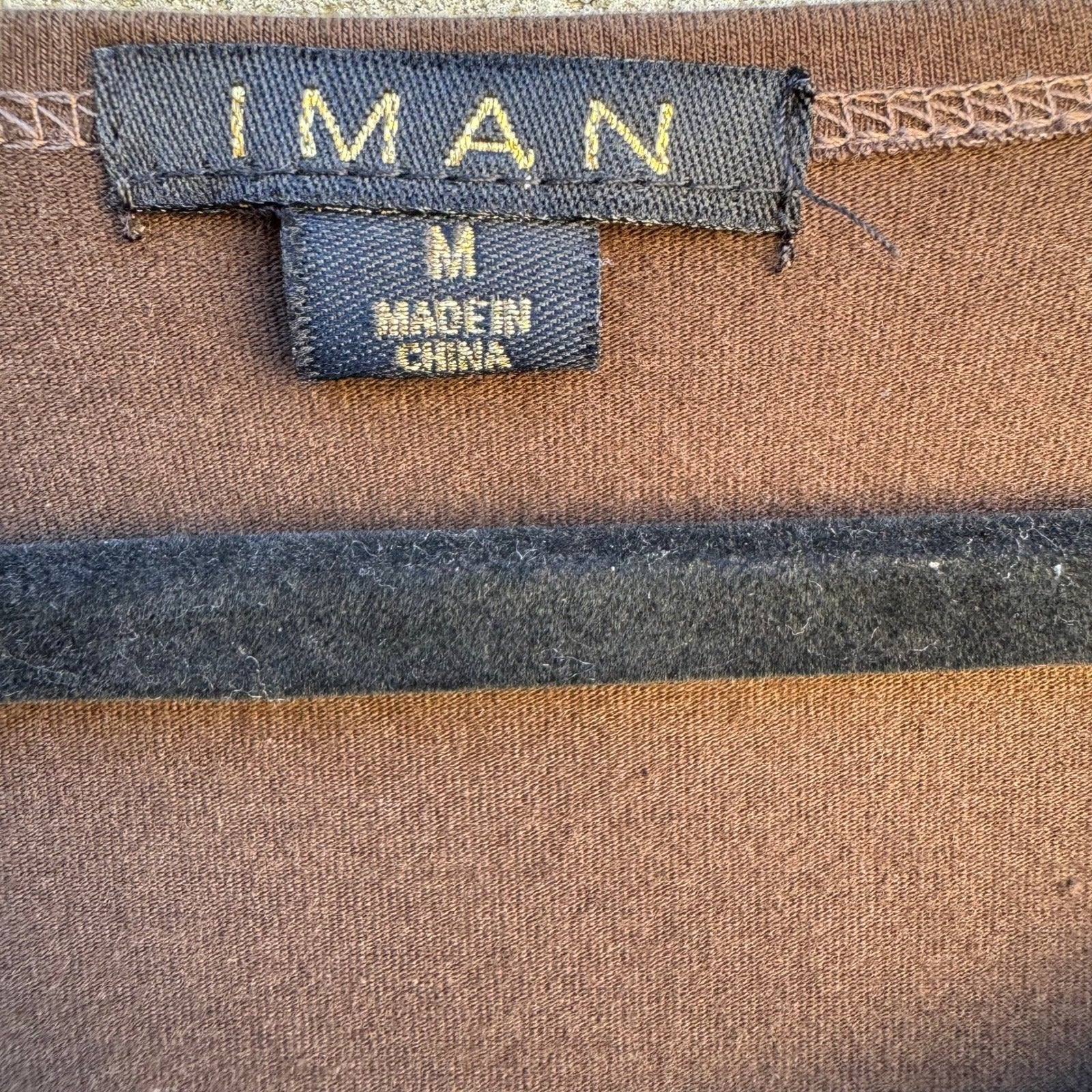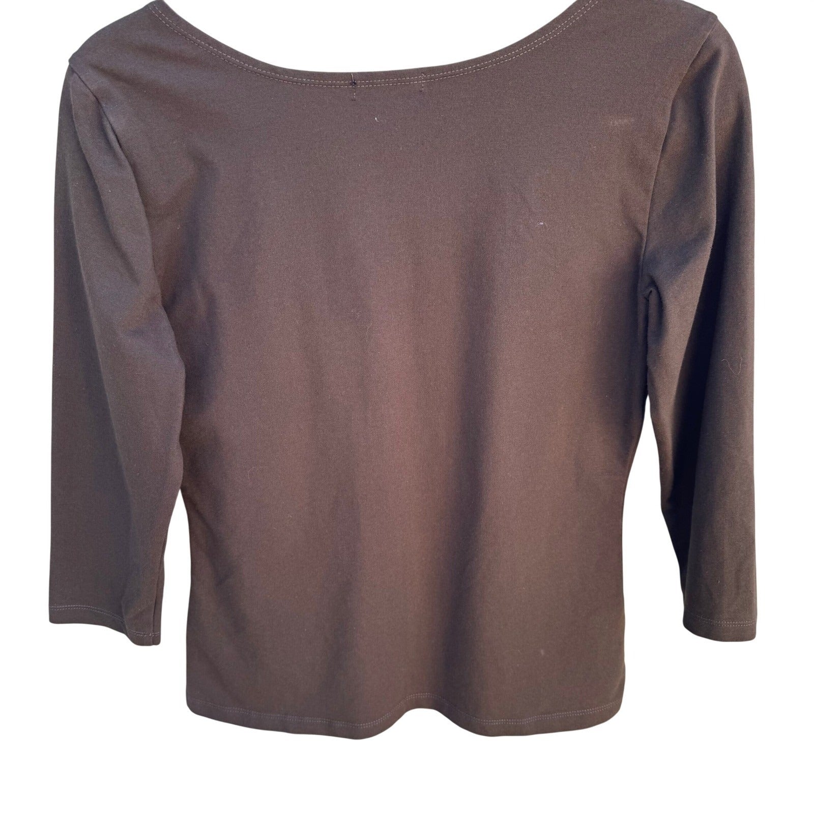 IMAN Y2K Womens Babydoll Brown Scoop Neck 3/4 Sleeve Cotton Stretch Top Size M