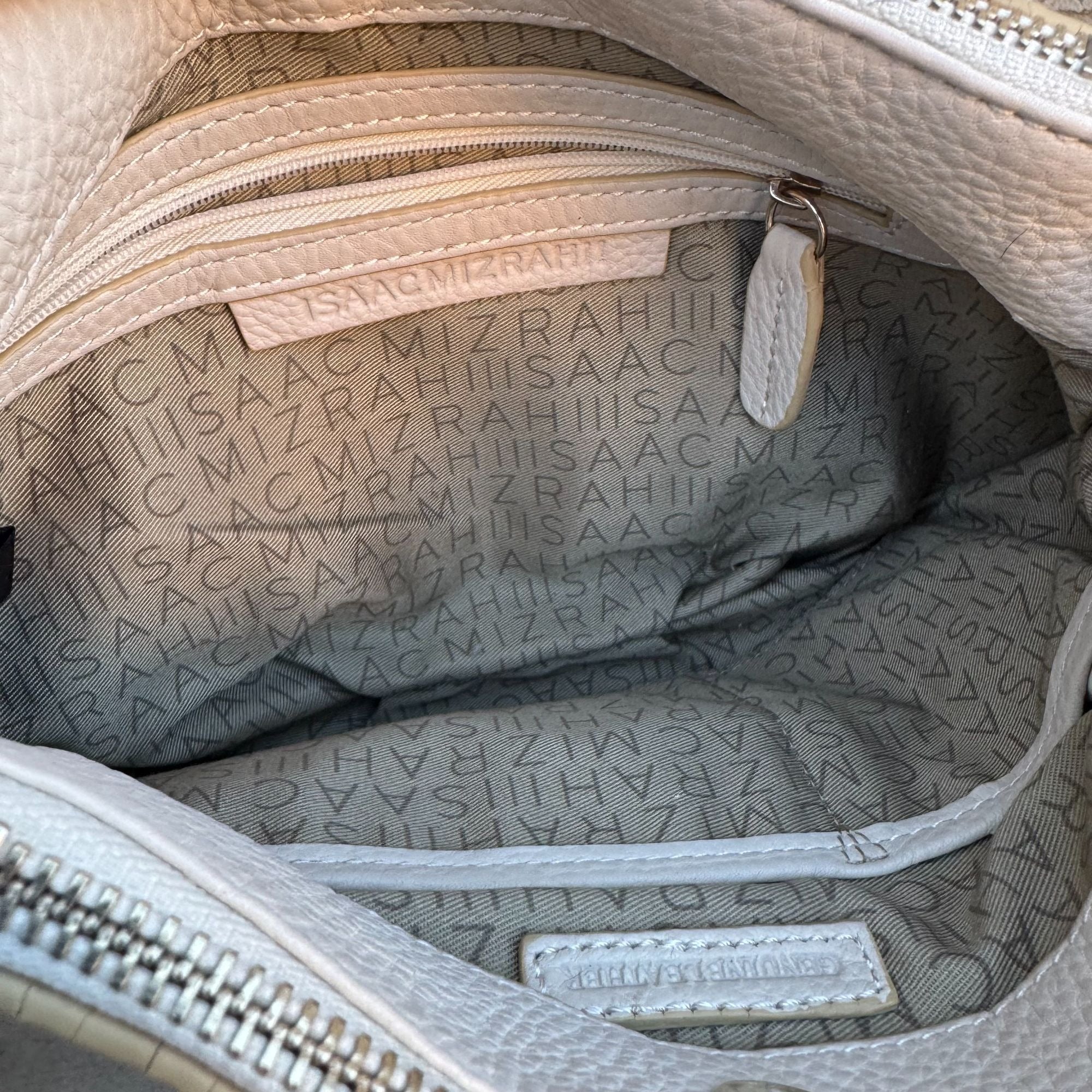 Isaac Mizrahi White Leather Crossbody Bag Gold Charm Tassel Accent Zip Top