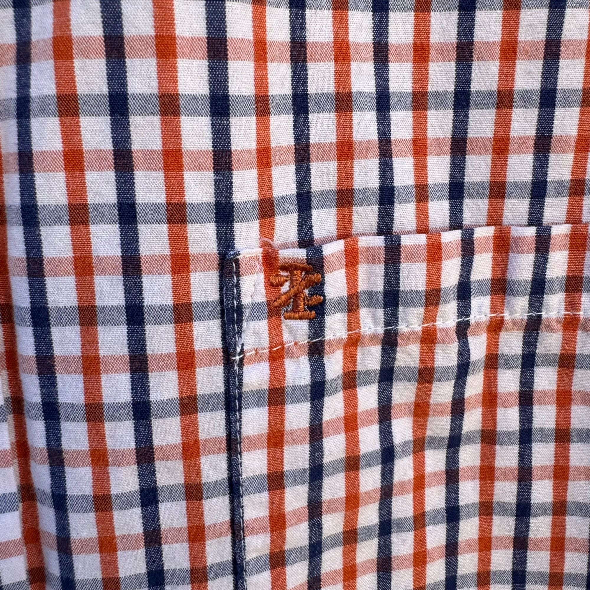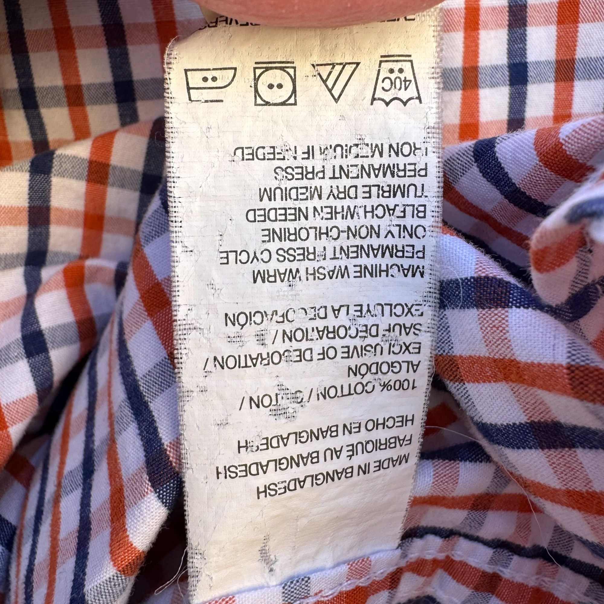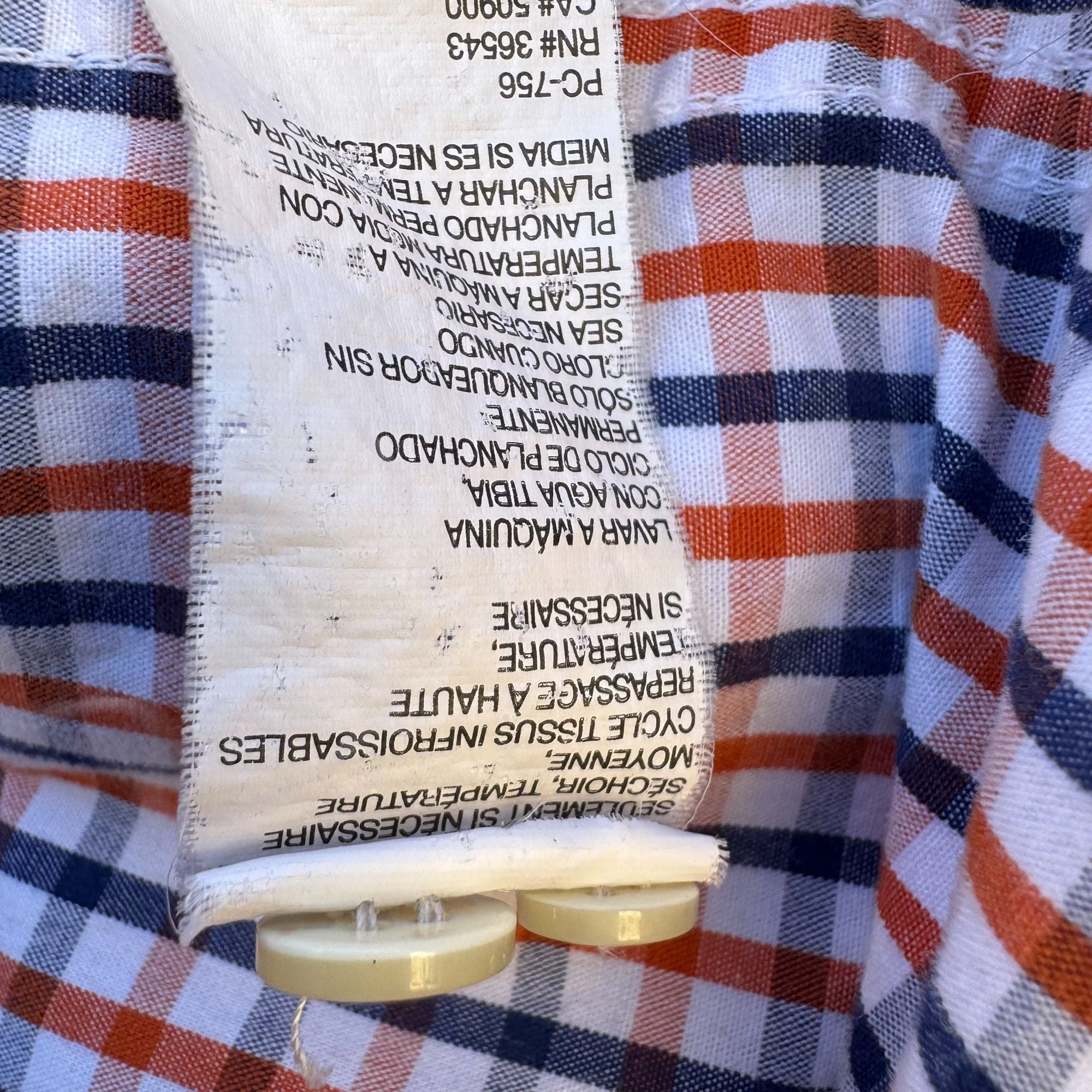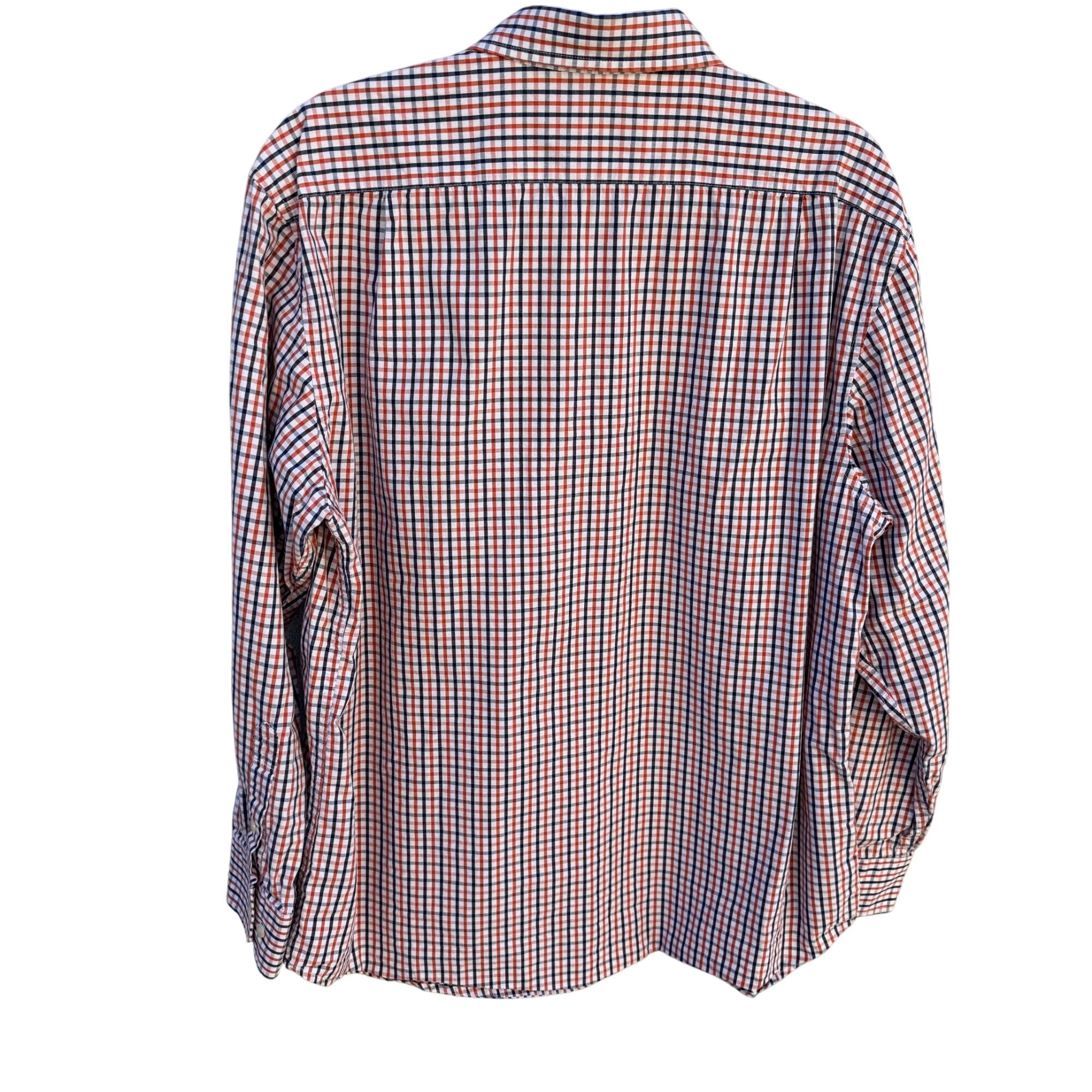 Izod Mens Long Sleeve Button Up Red/Navy/White Plaid Cotton Classic Fit Shirt L