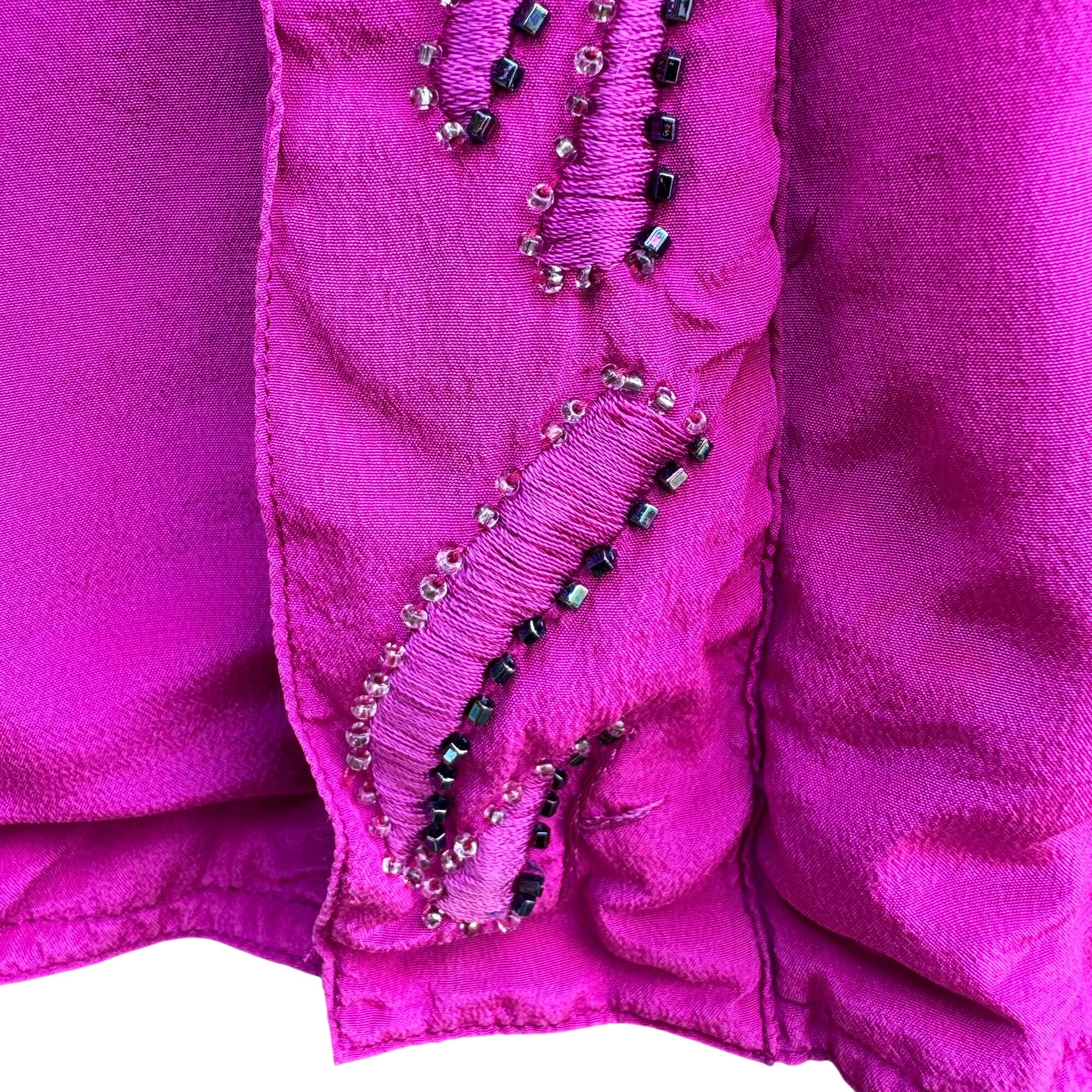 Janice David Vintage 80s PInk Silk Abstract Beaded Bomber Jacket Wearable Art S