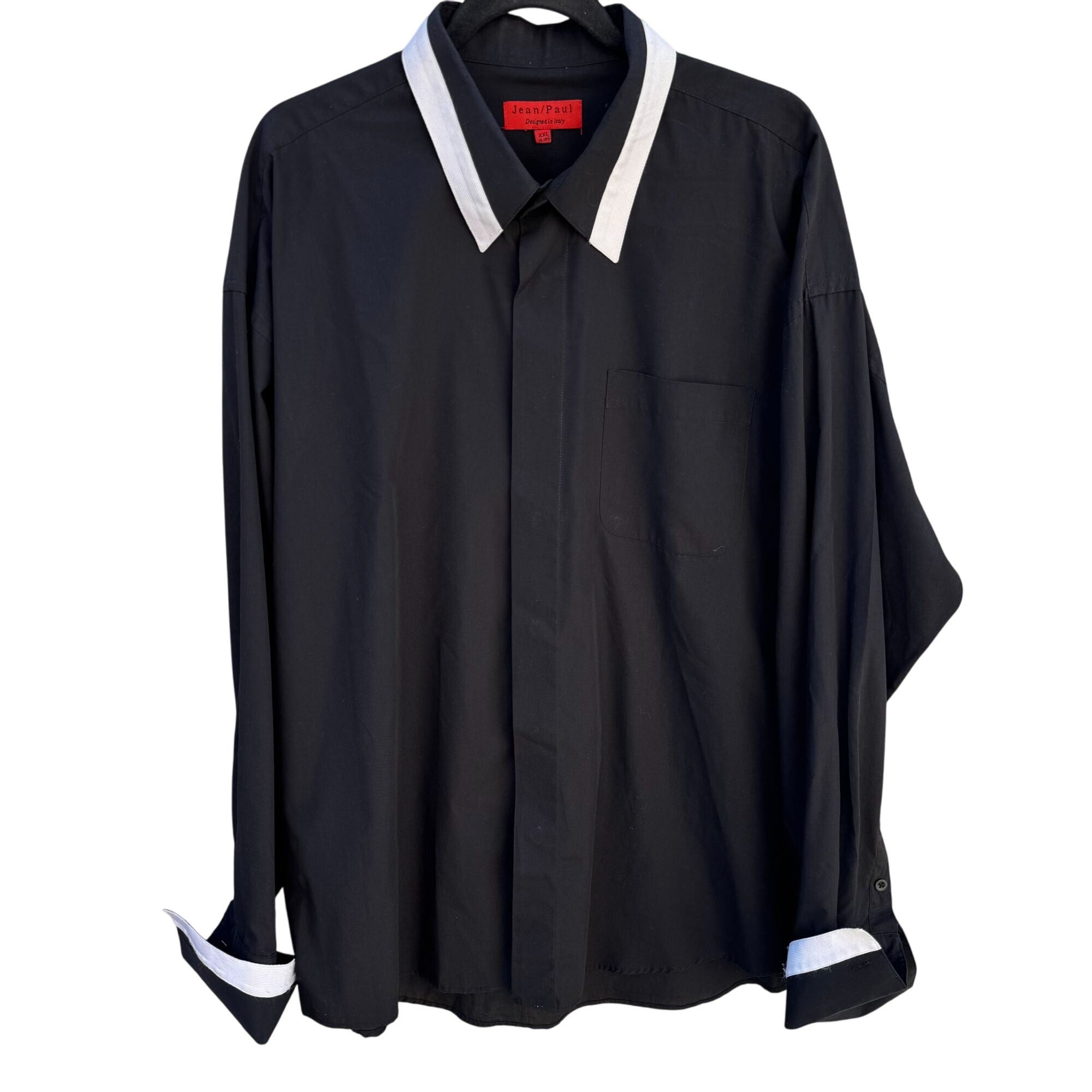 Jean/Paul Mens Black Button-Up White Collar French Cuff Formal Party Shirt XXL