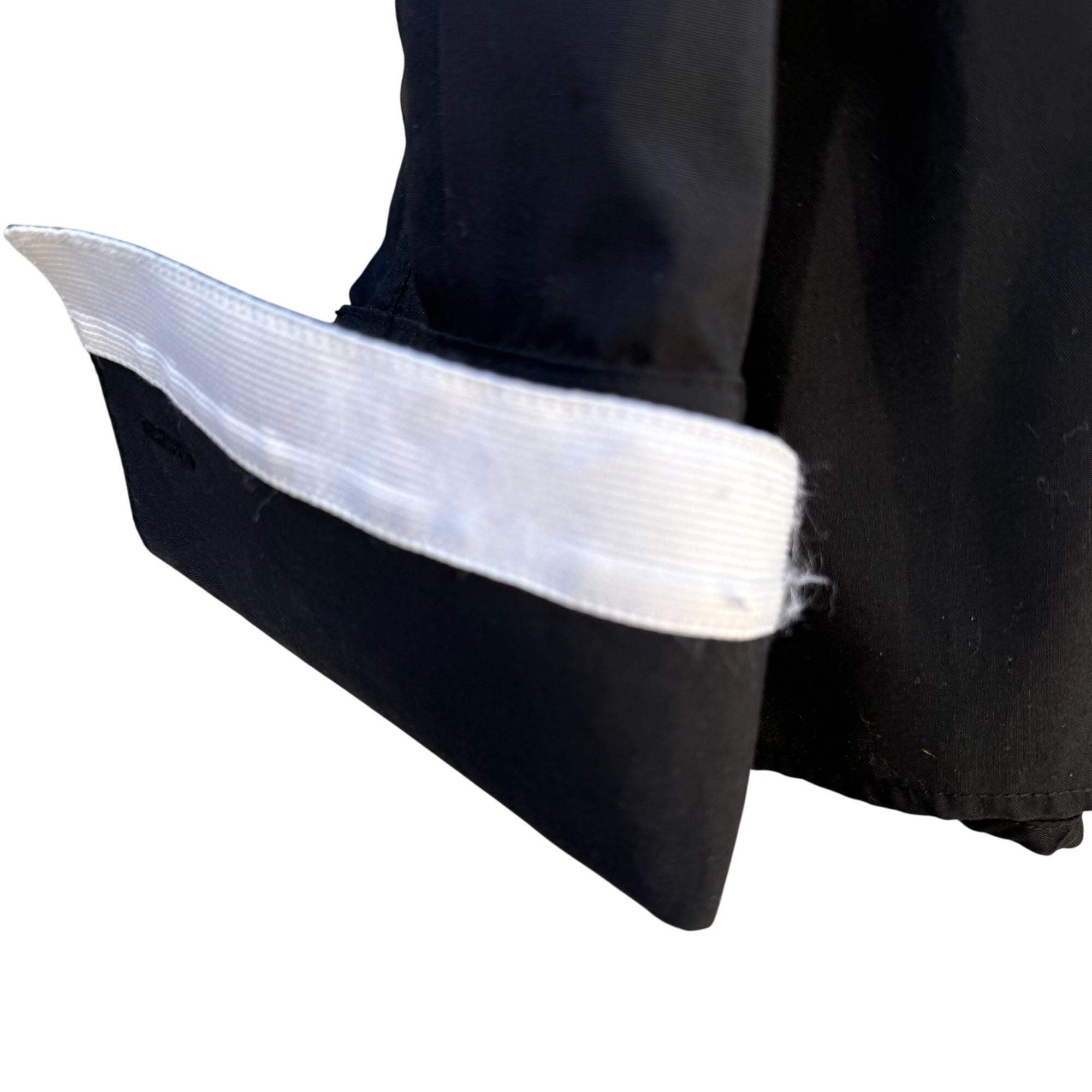 • Contrasting white collar and cuffs