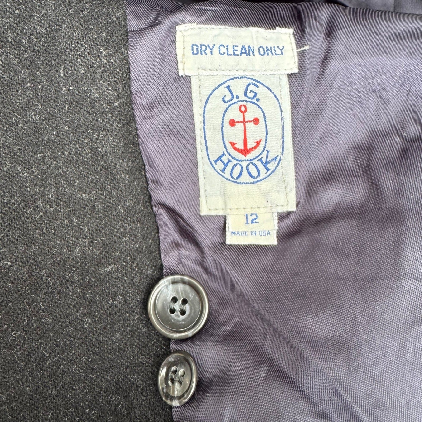 JG Hook Vintage Women's Skirt Suit Set Size 12/14 Black Wool Made in USA Preppy