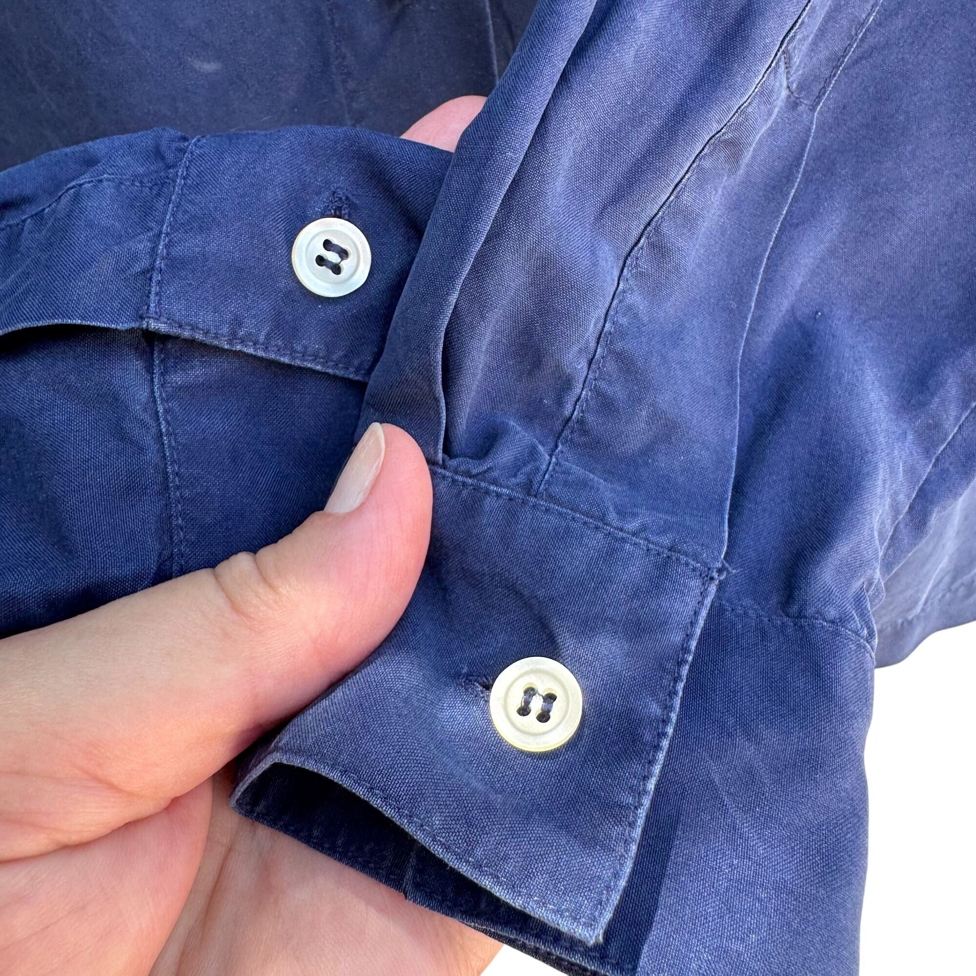 Jones & Co Vintage Womens Preppy Blue Silk Long Sleeve Button Down Shirt Small