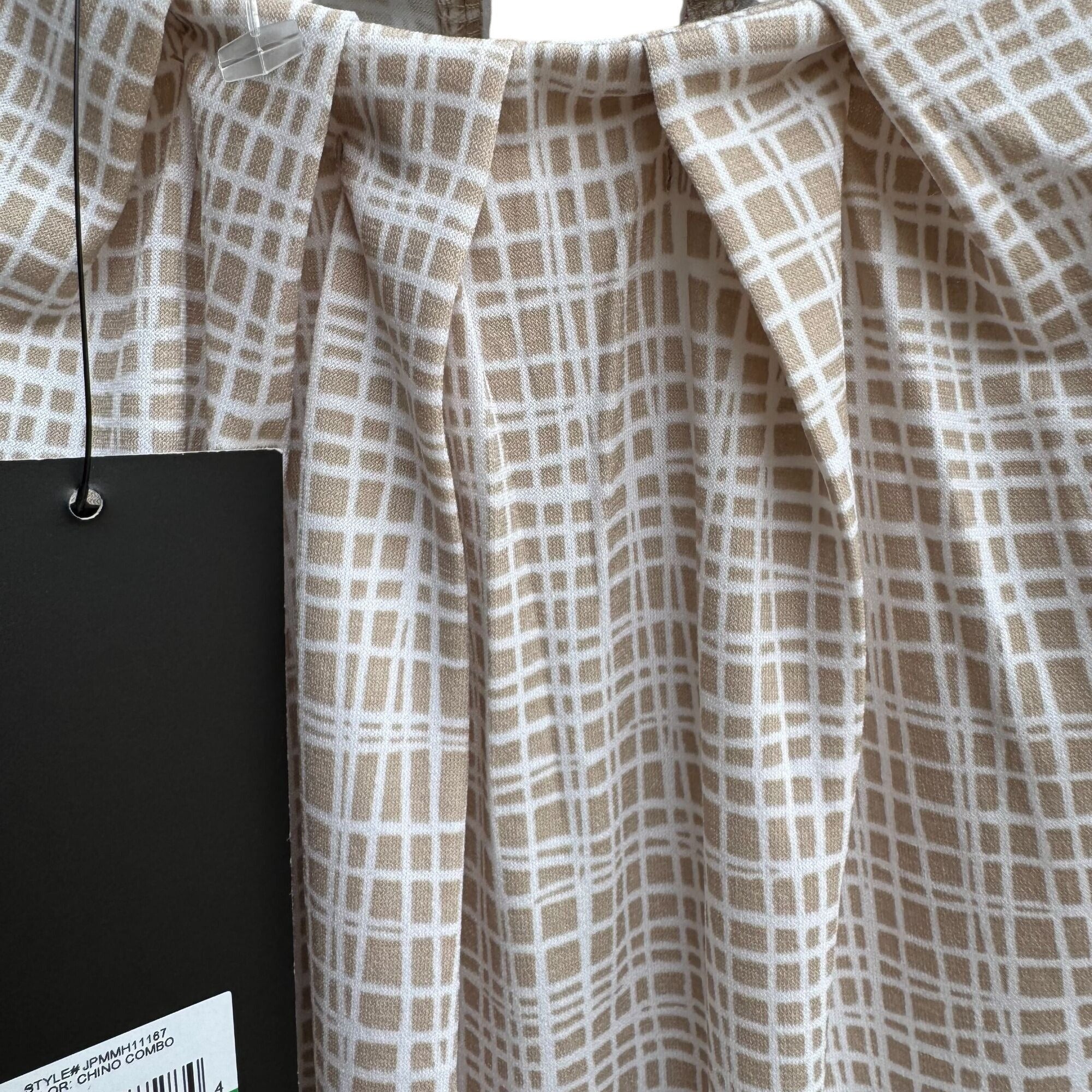 This Jones New York sleeveless blouse offers a sophisticated design with a button closure at the back. Tailored for a modern fit, it features a subtle grid pattern in a versatile chino color. Ideal for both the workplace and casual settings, it provides comfort and elegance.