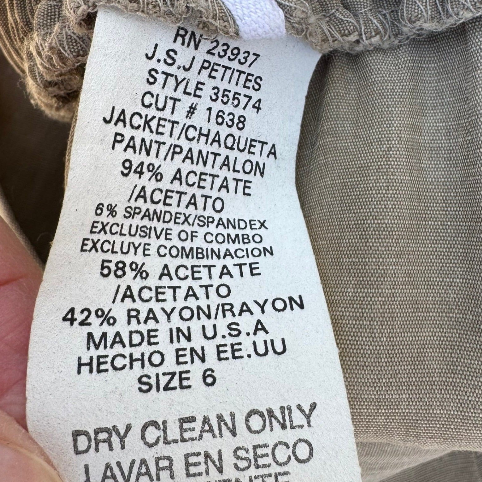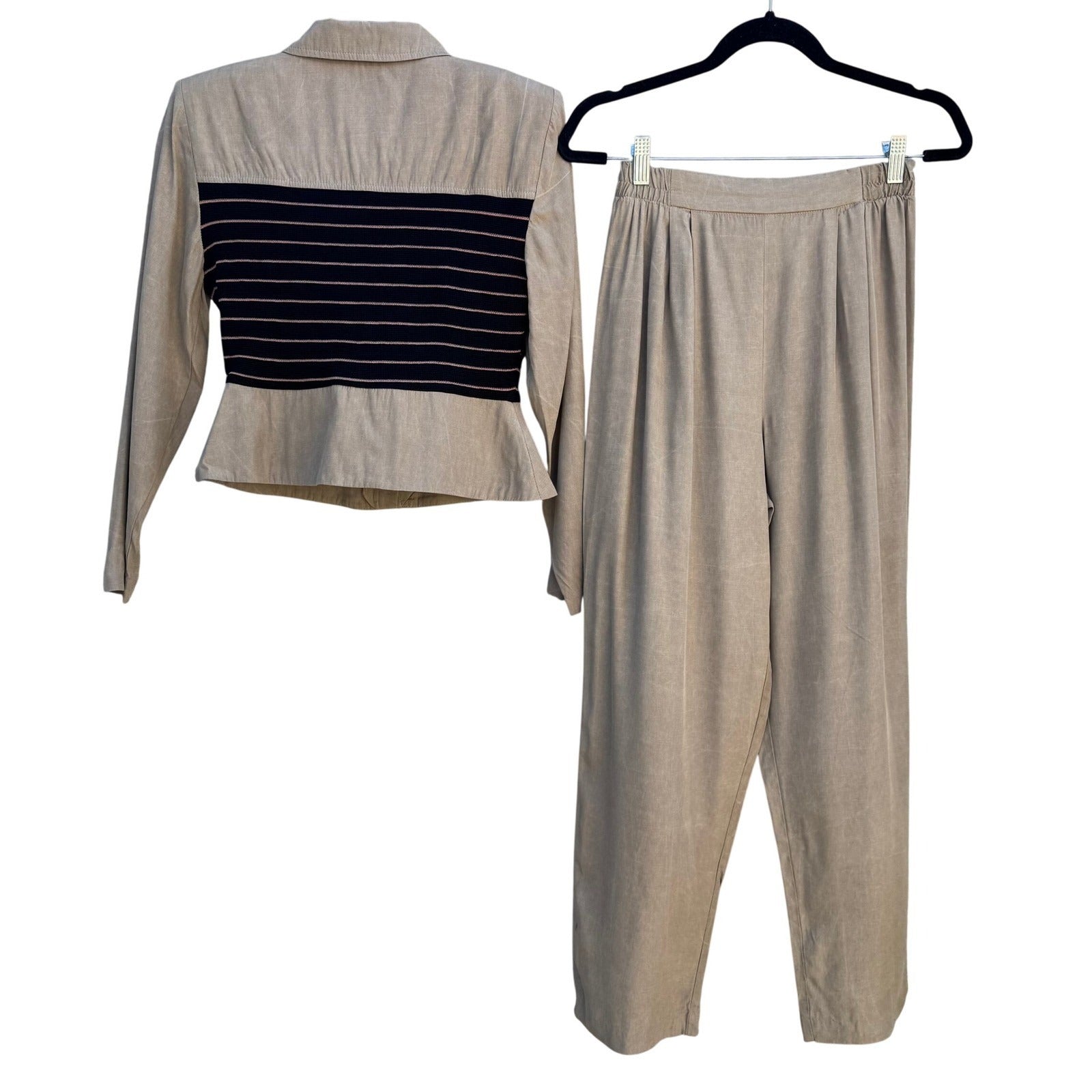 JSJ Petites Vintage 2 Piece Pant Set Tan Black Striped Button Jacket Trousers
