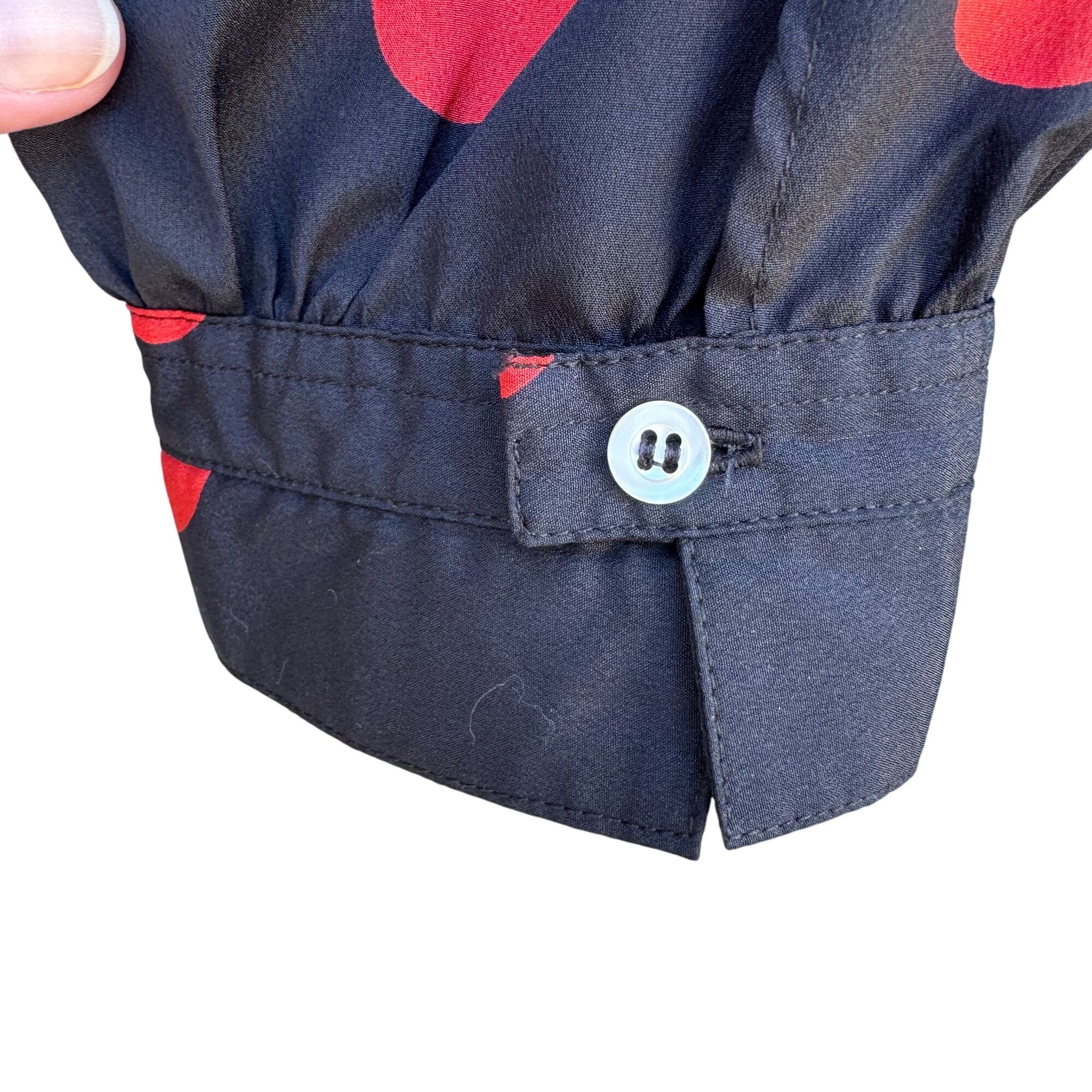 Julien Paris Vintage Womens Black Red Polka Dot Button 3/4 Sleeve Flowy Blouse L