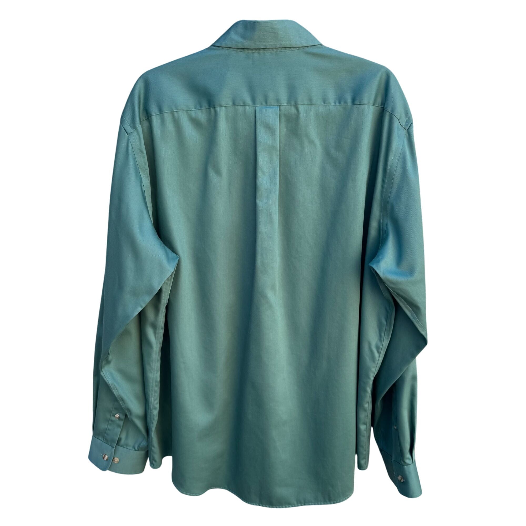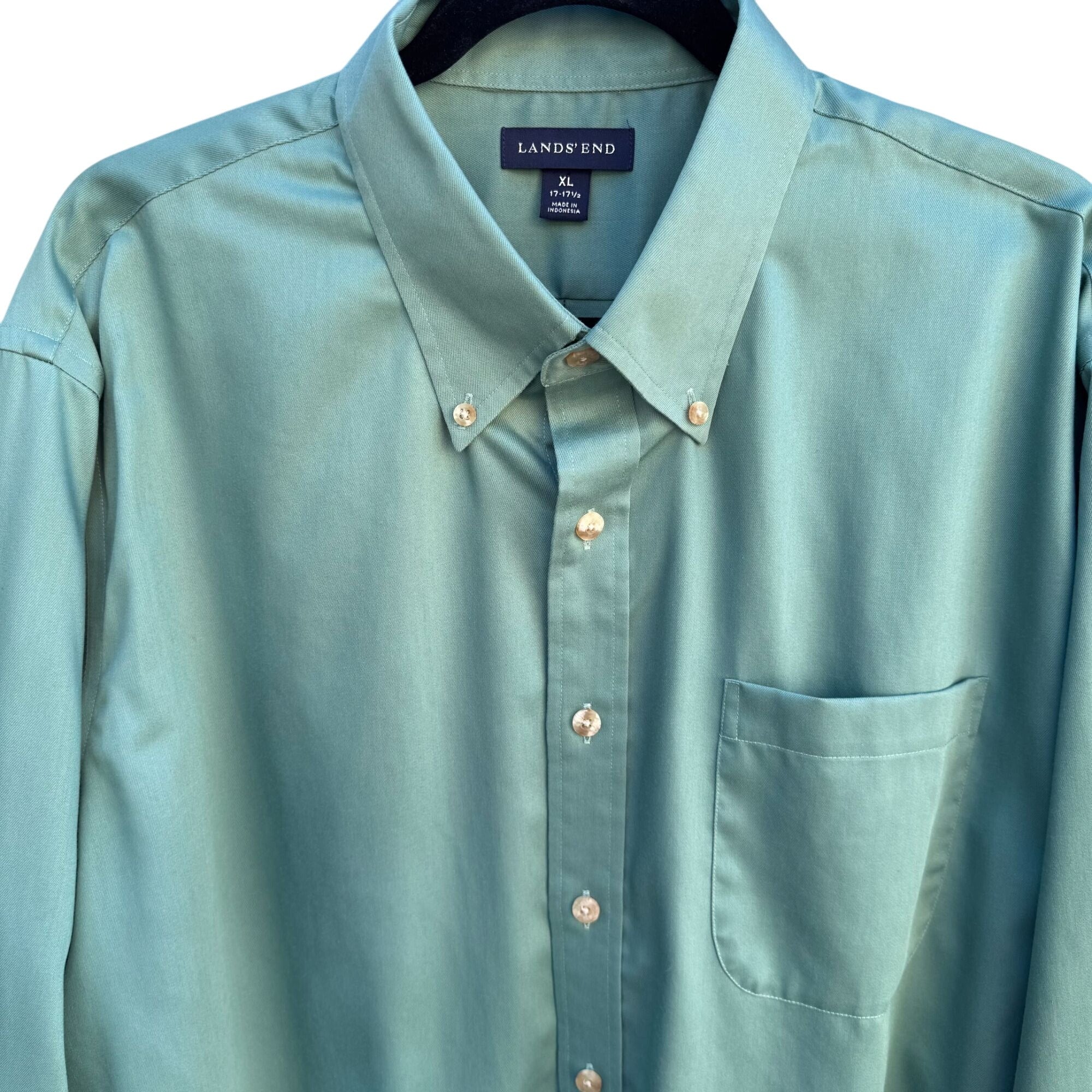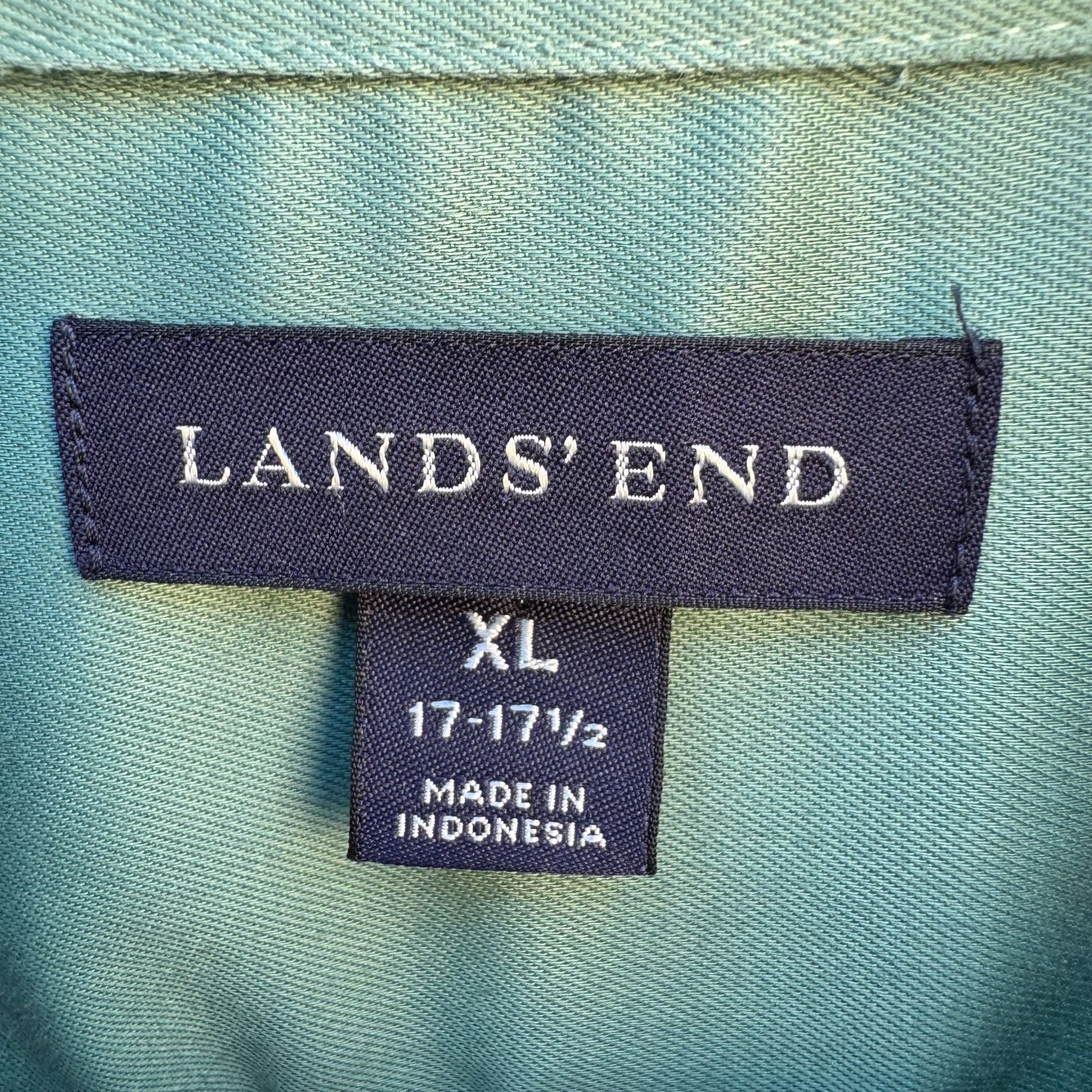 Lands End Vintage 90s Mens Green Long Sleeve Button-Down Dress Shirt XL 17-17.5