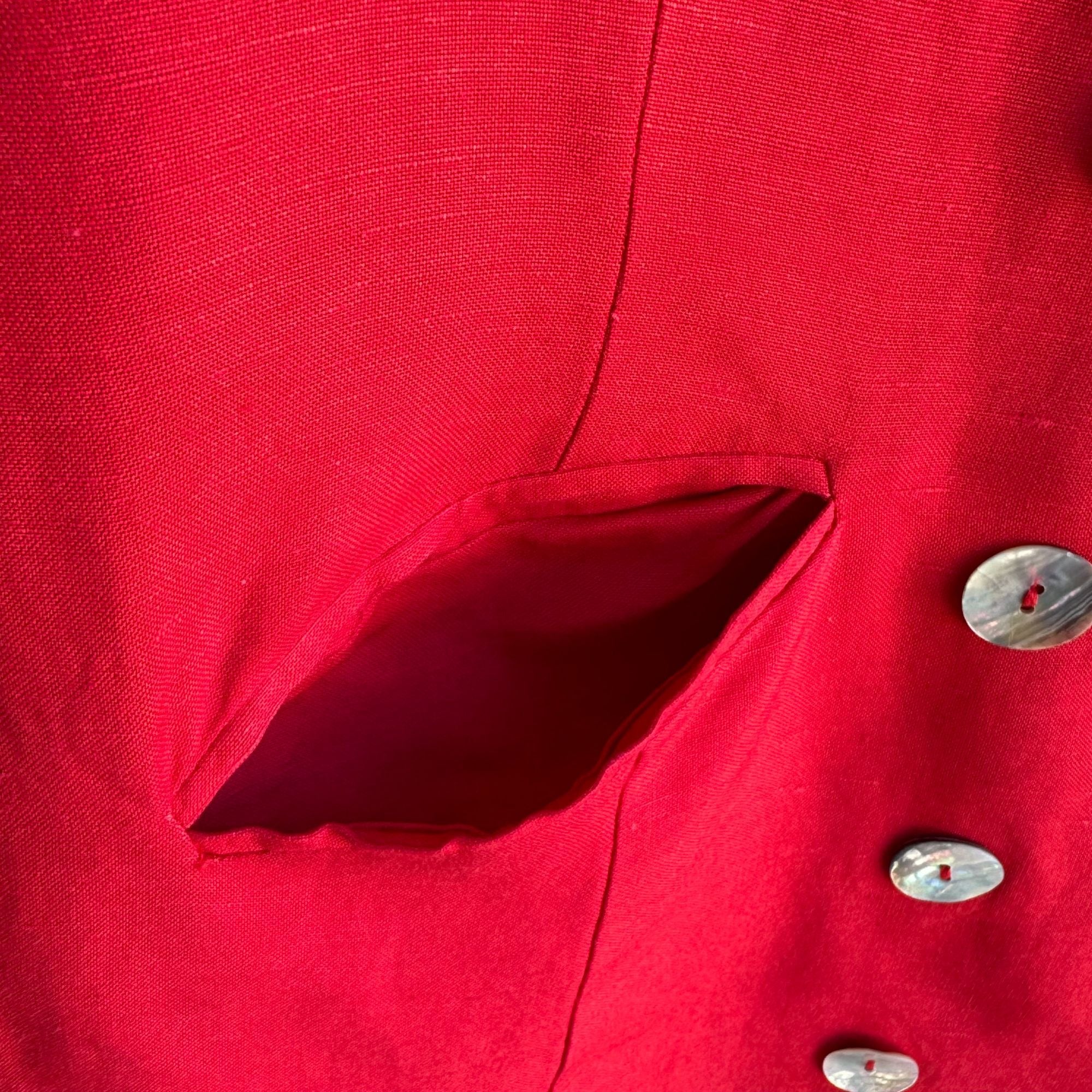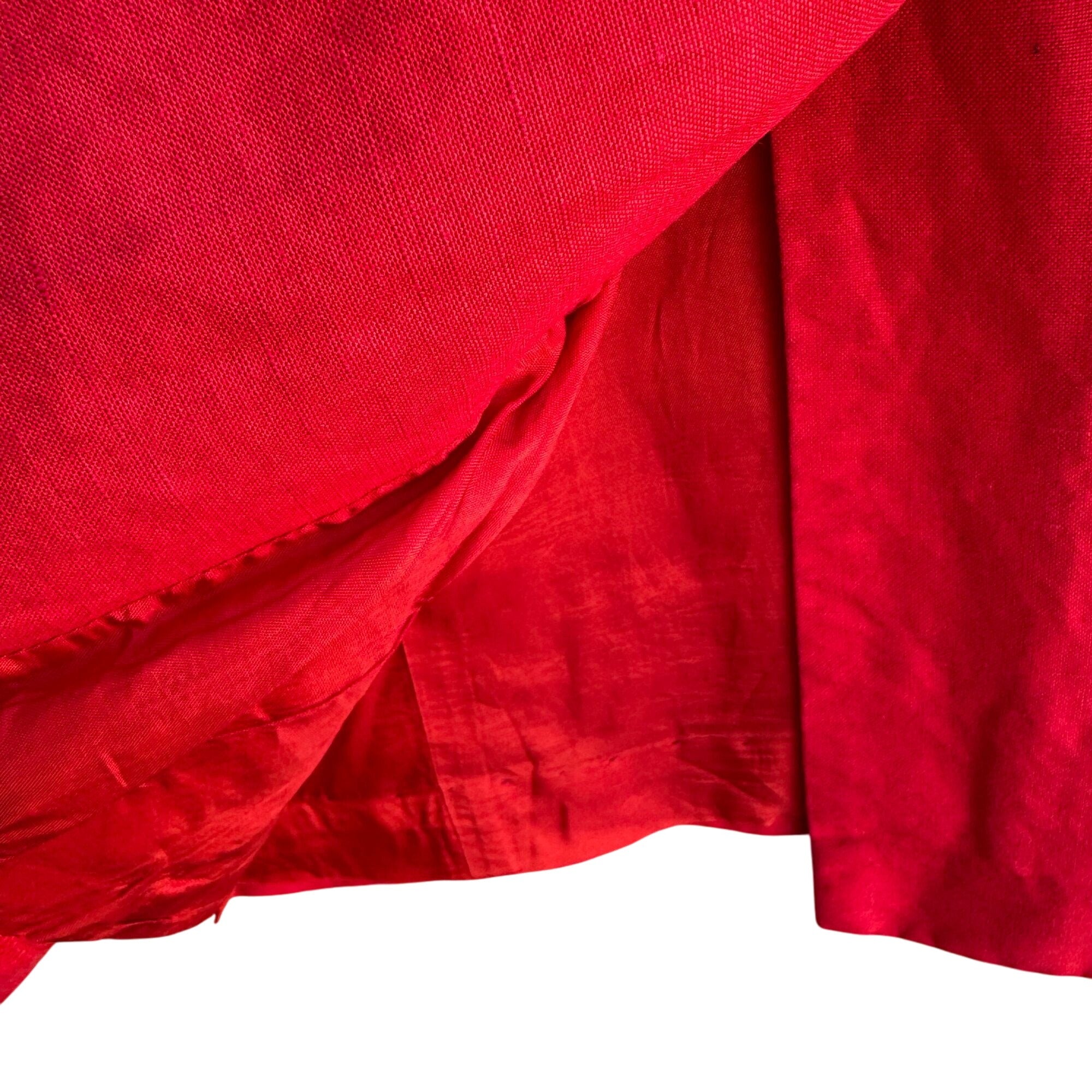 Linane Vintage Red Shell Button Linen Double-Breasted Sleeveless Lined Dress