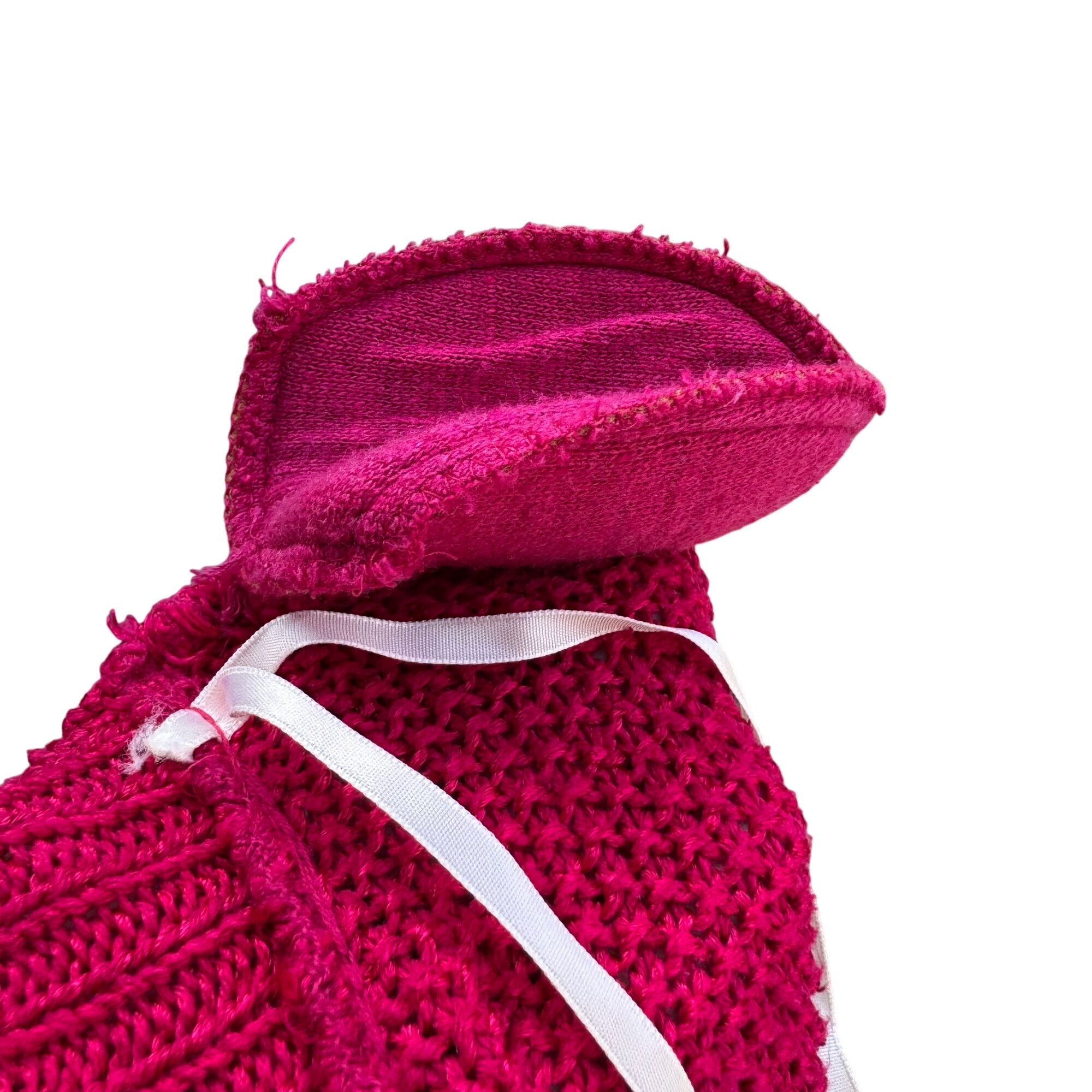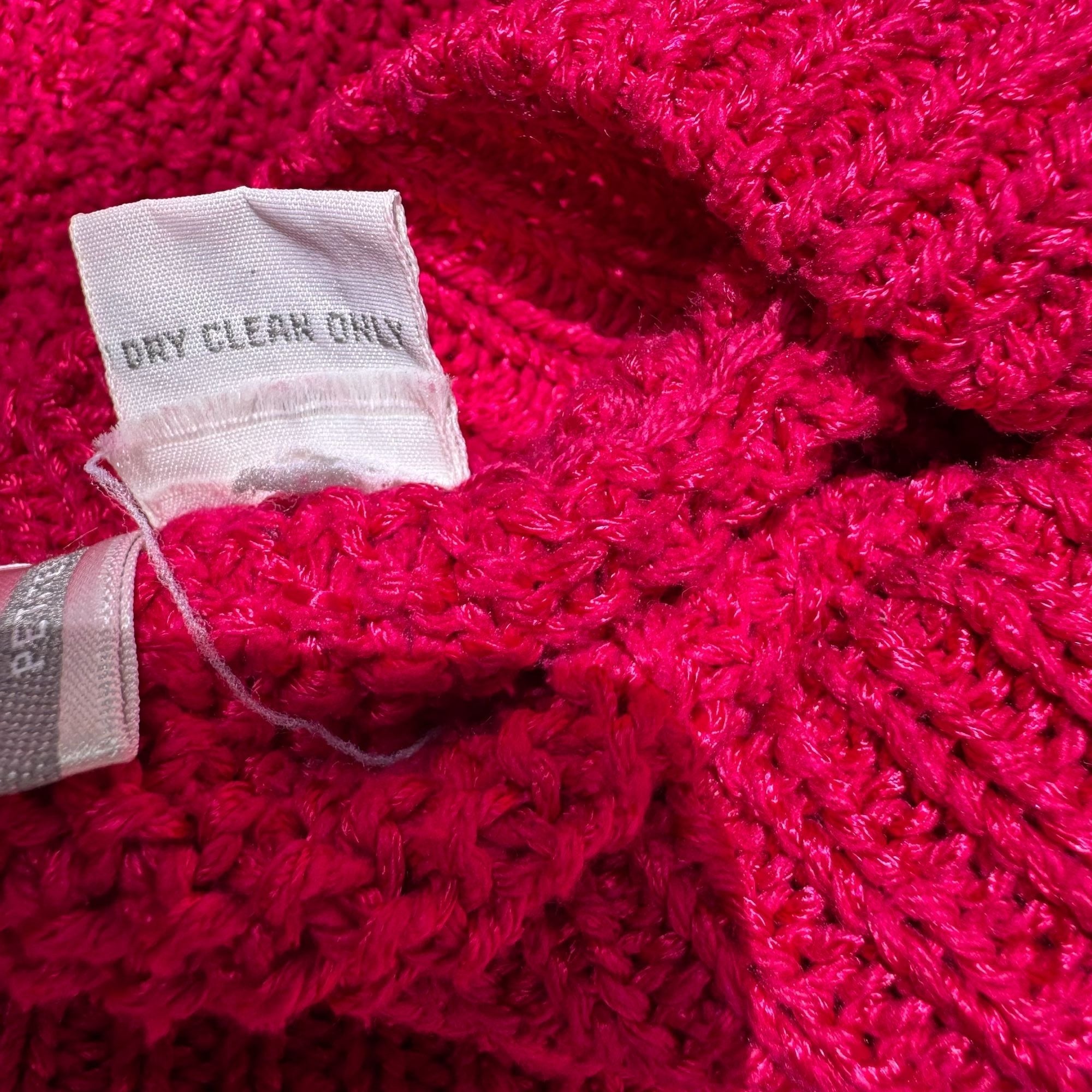This cropped sweater features a textured knit design and a vibrant pink hue, ideal for layering or standalone wear. Its short sleeves and ribbed edges add structure and style.