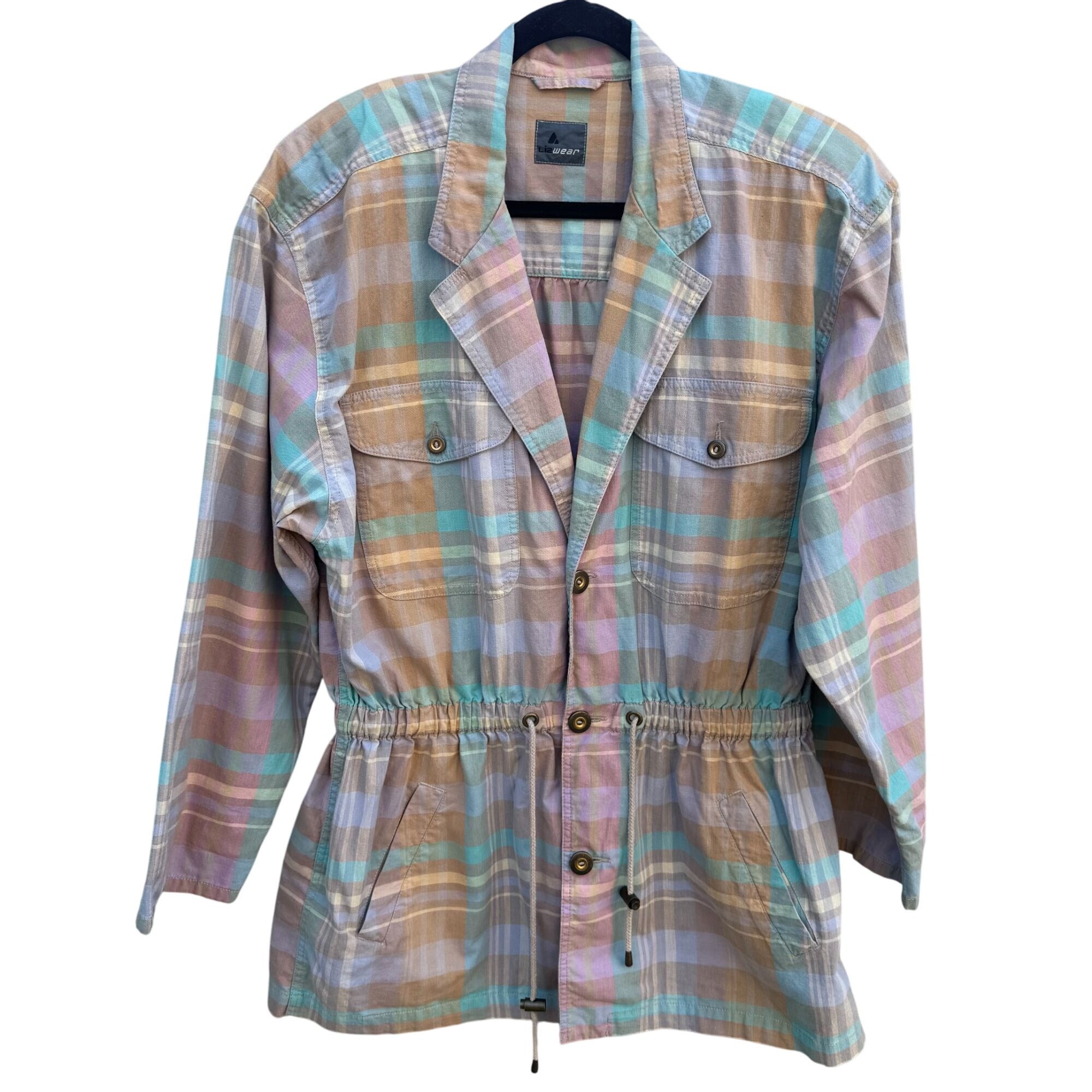 Lizwear Vintage 80s Pastel Plaid Womens Elastic Drawstring Waist Retro Jacket LG