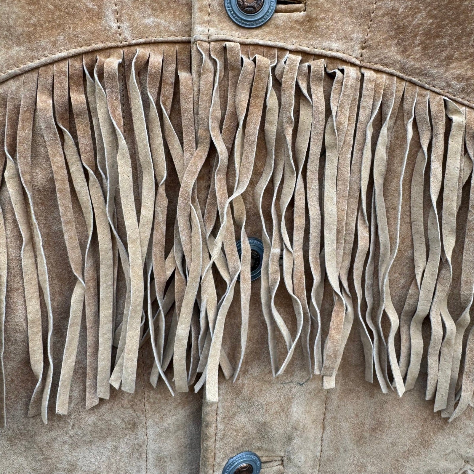 Lizwear Vintage Tan Suede Leather Fringe Western Jacket Womens M Rodeo Festival