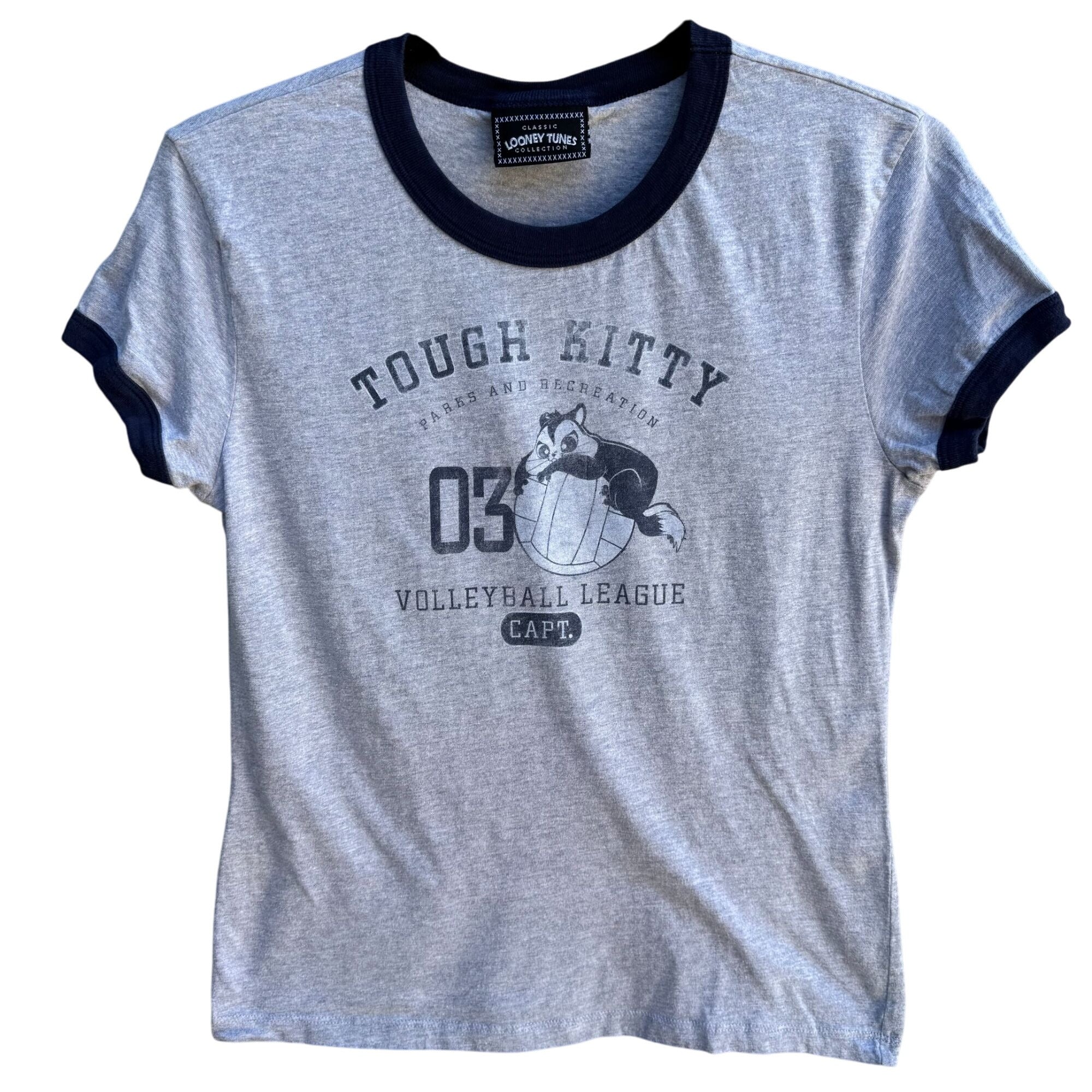 Looney Tunes Vintage Y2K Tough Kitty Volleyball League Ringer Babydoll Tee M
