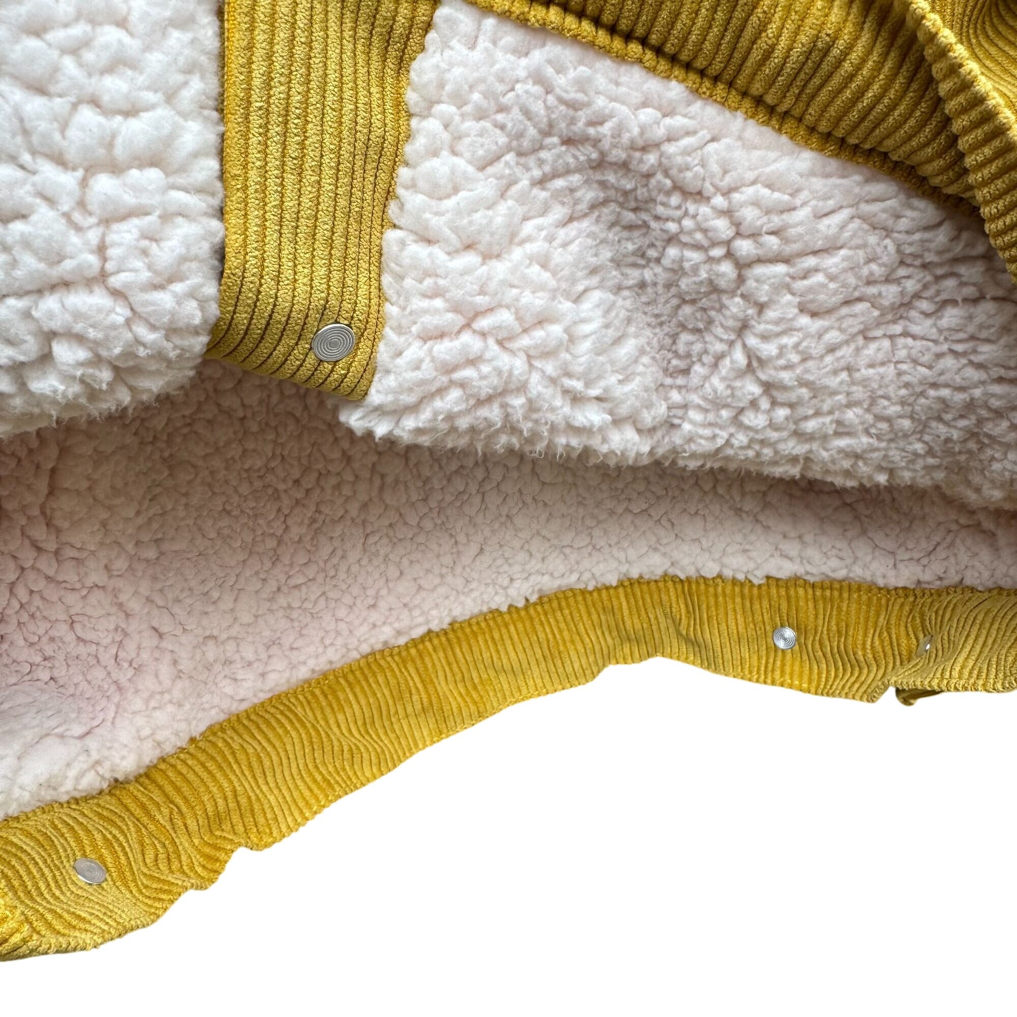 Embrace your inner retro lumberjack with this mustard-yellow corduroy jacket featuring cozy sherpa lining. Keeps you warm while looking effortlessly cool.