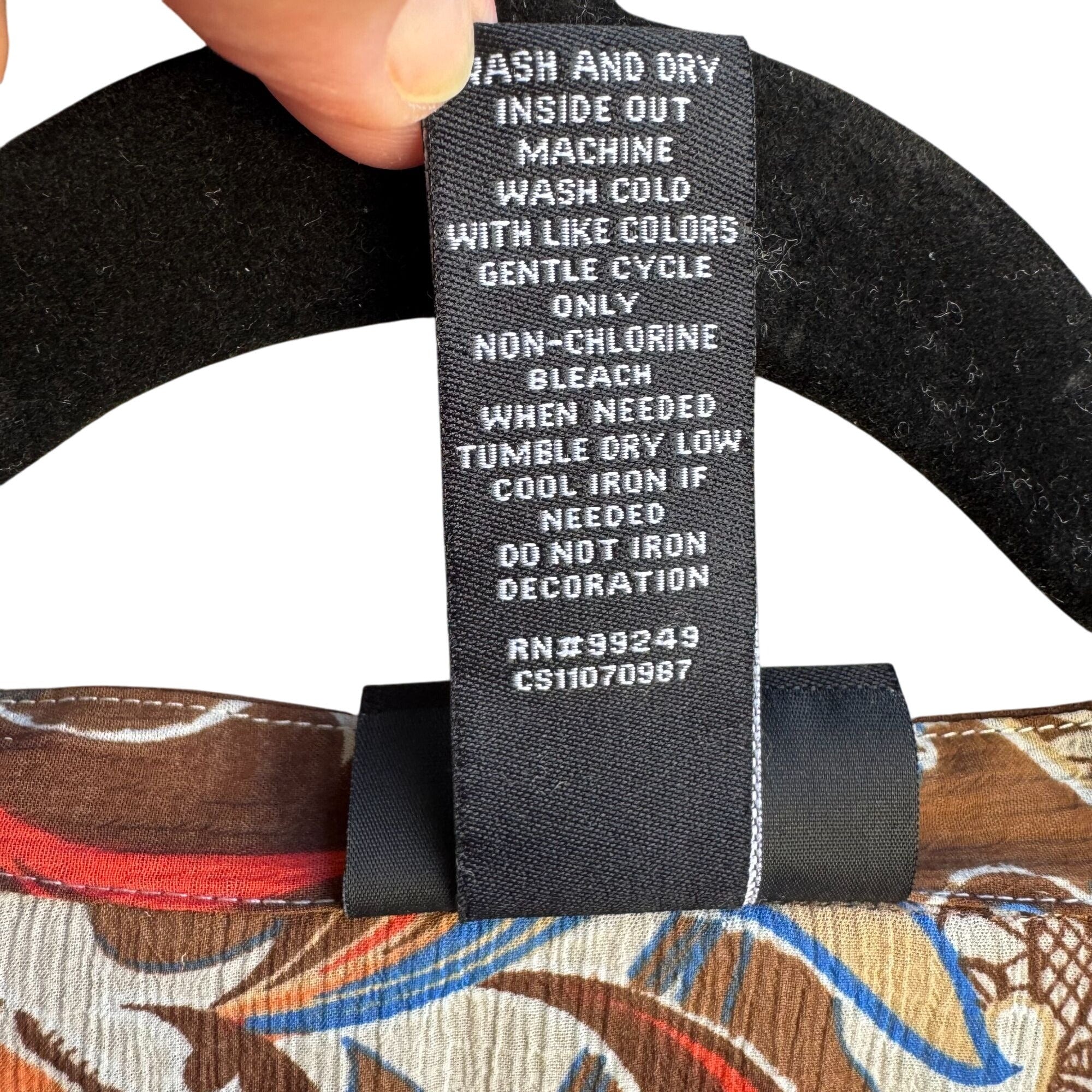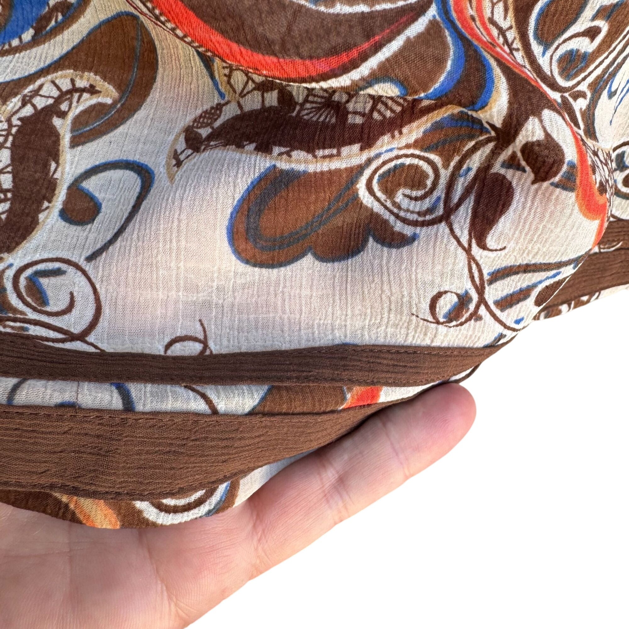 Maggie Barnes Womens Beaded Paisley Boho Flowy Brown Semi Sheer Tunic Blouse 3X