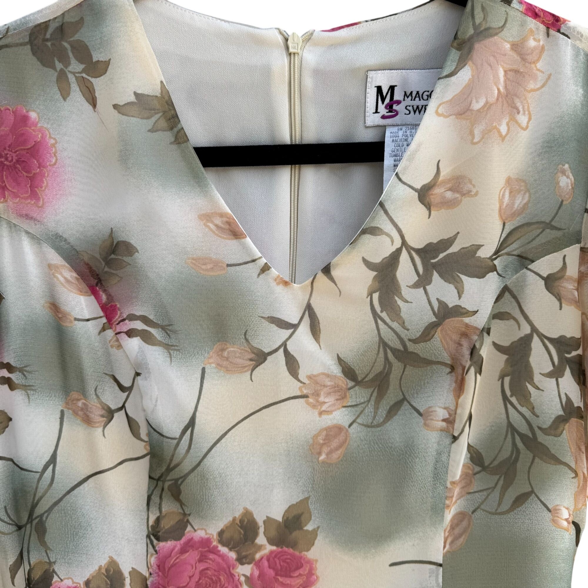 Maggie Sweet Vintage Womens Floral Chiffon V-Neck Short Sleeve Midi Dress PS
