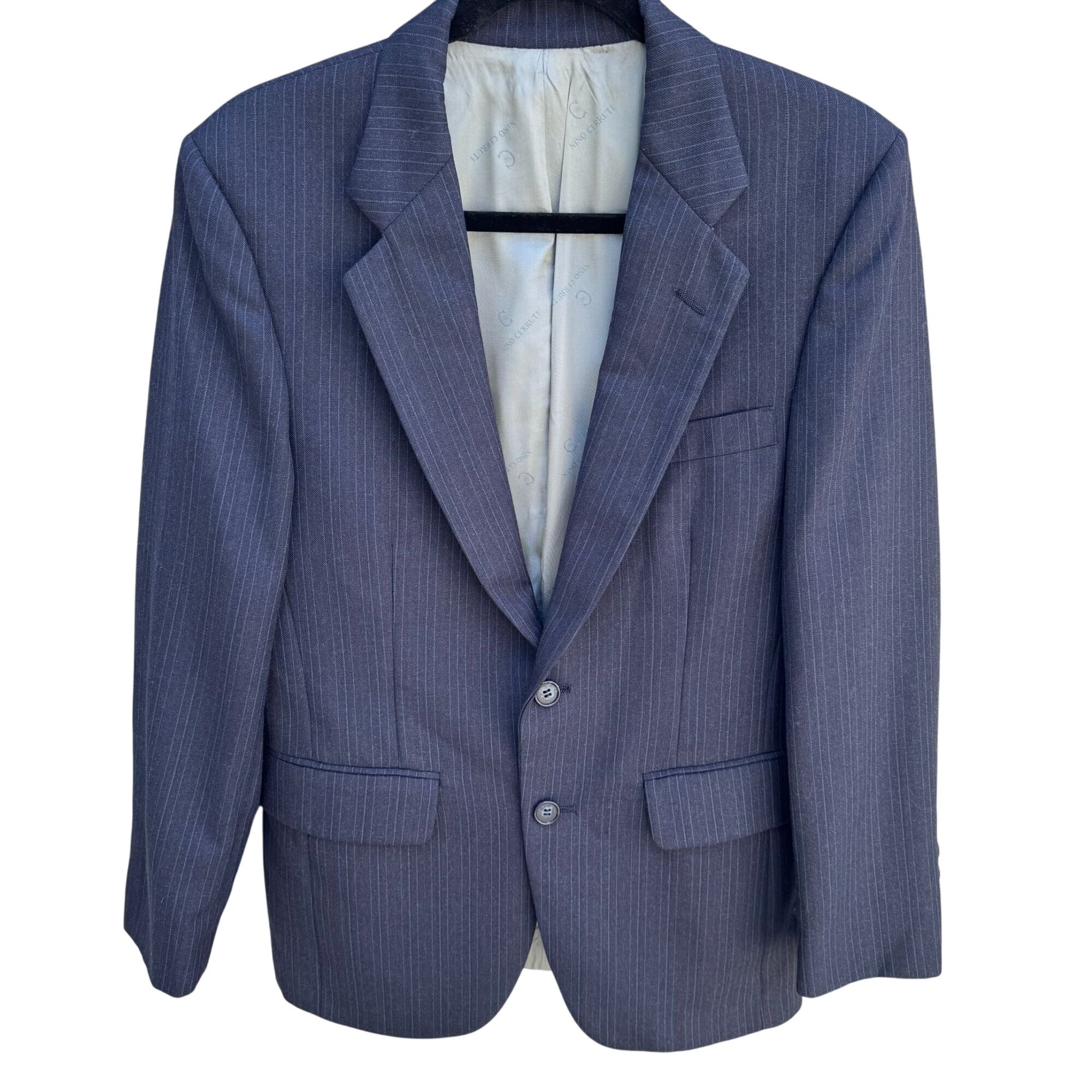 Nino Cerruti Vintage Mens Blue Gray Pinstripe Two-Button Single Breasted Blazer