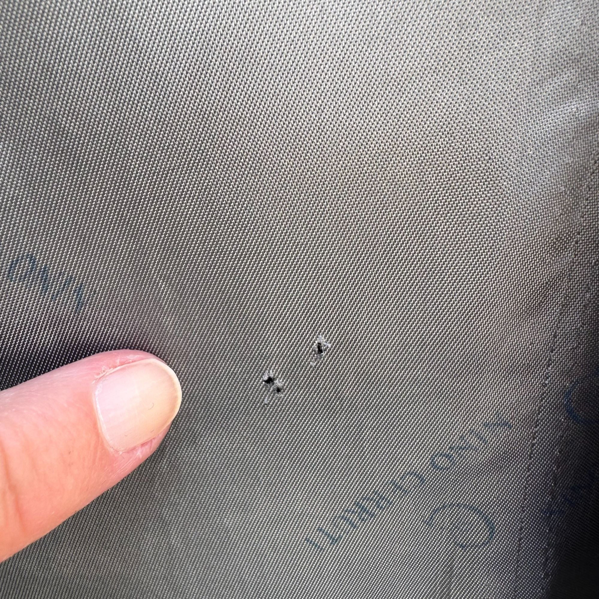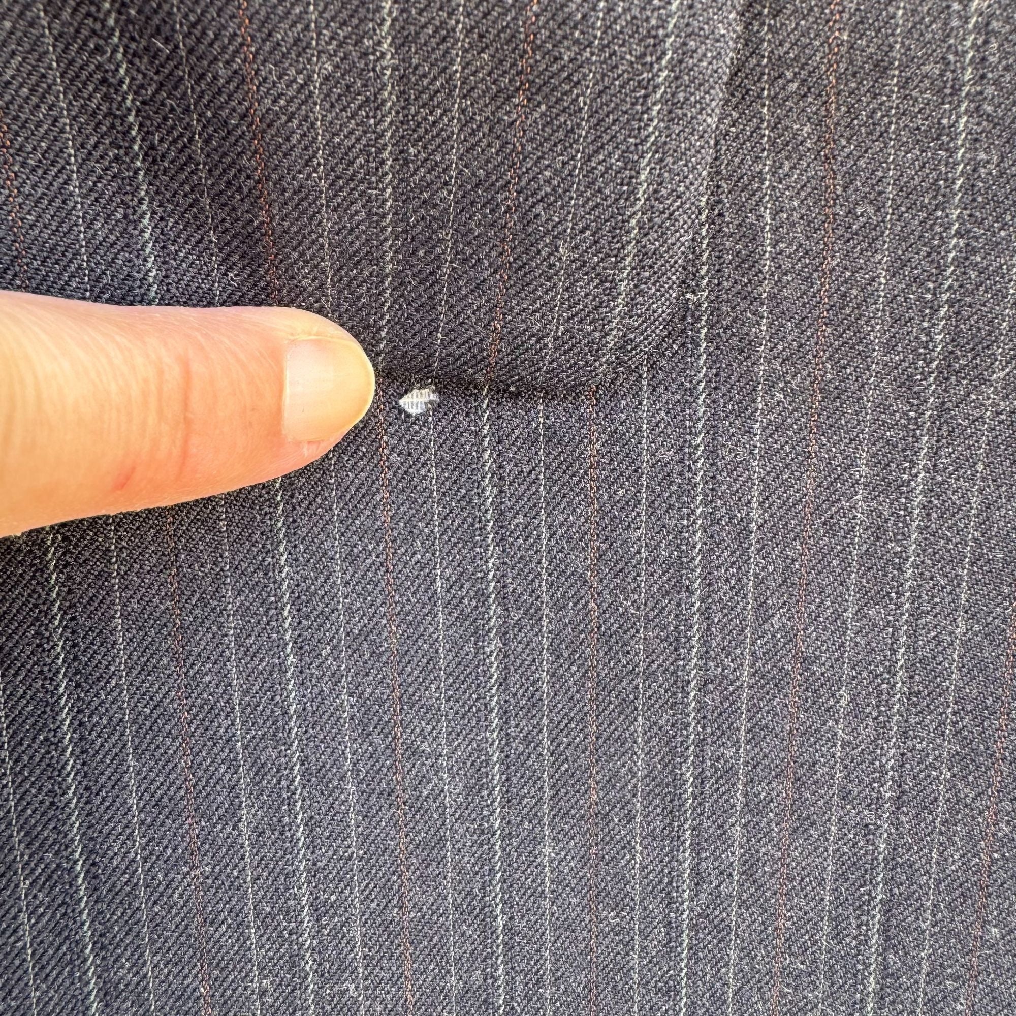 Small pinhole on right pocket area. Small holes noted on the inside lining.