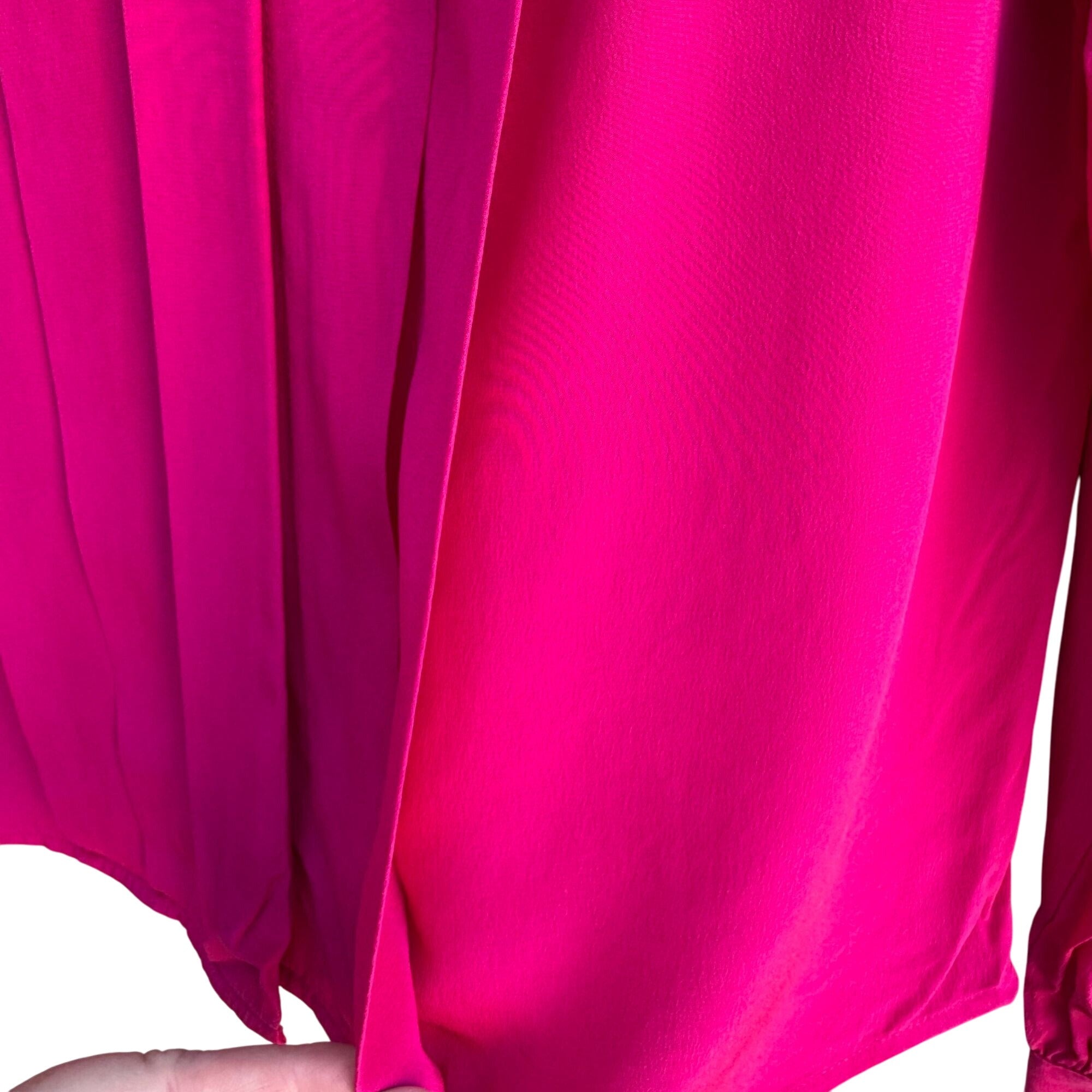 Nordstrom Petite Focus Vintage Womens Silk Hot Pink Long Sleeve Shirt Blouse 2