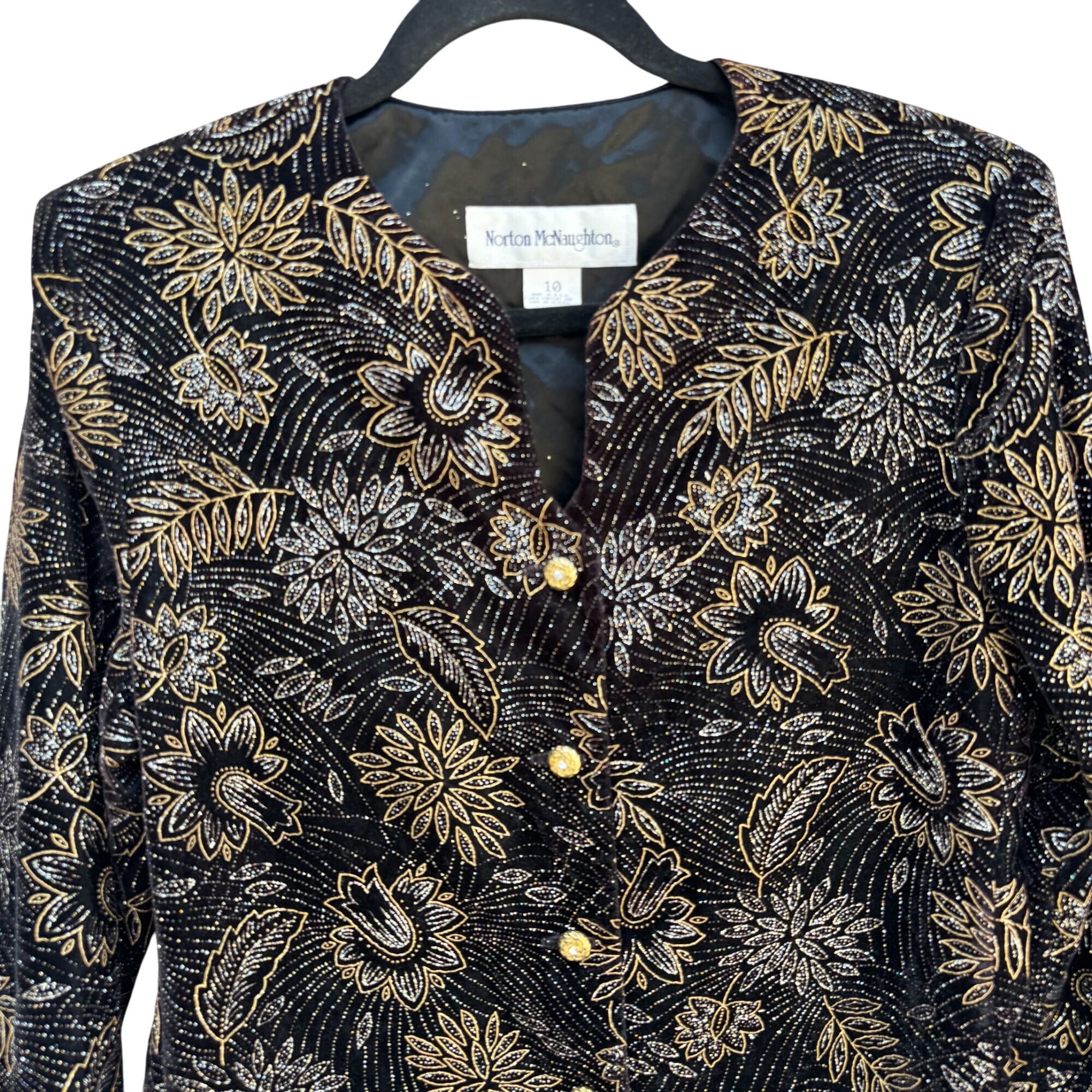 Norton McNaughton Vintage Womens Black & Gold Floral Button-Up Blazer Jacket 10