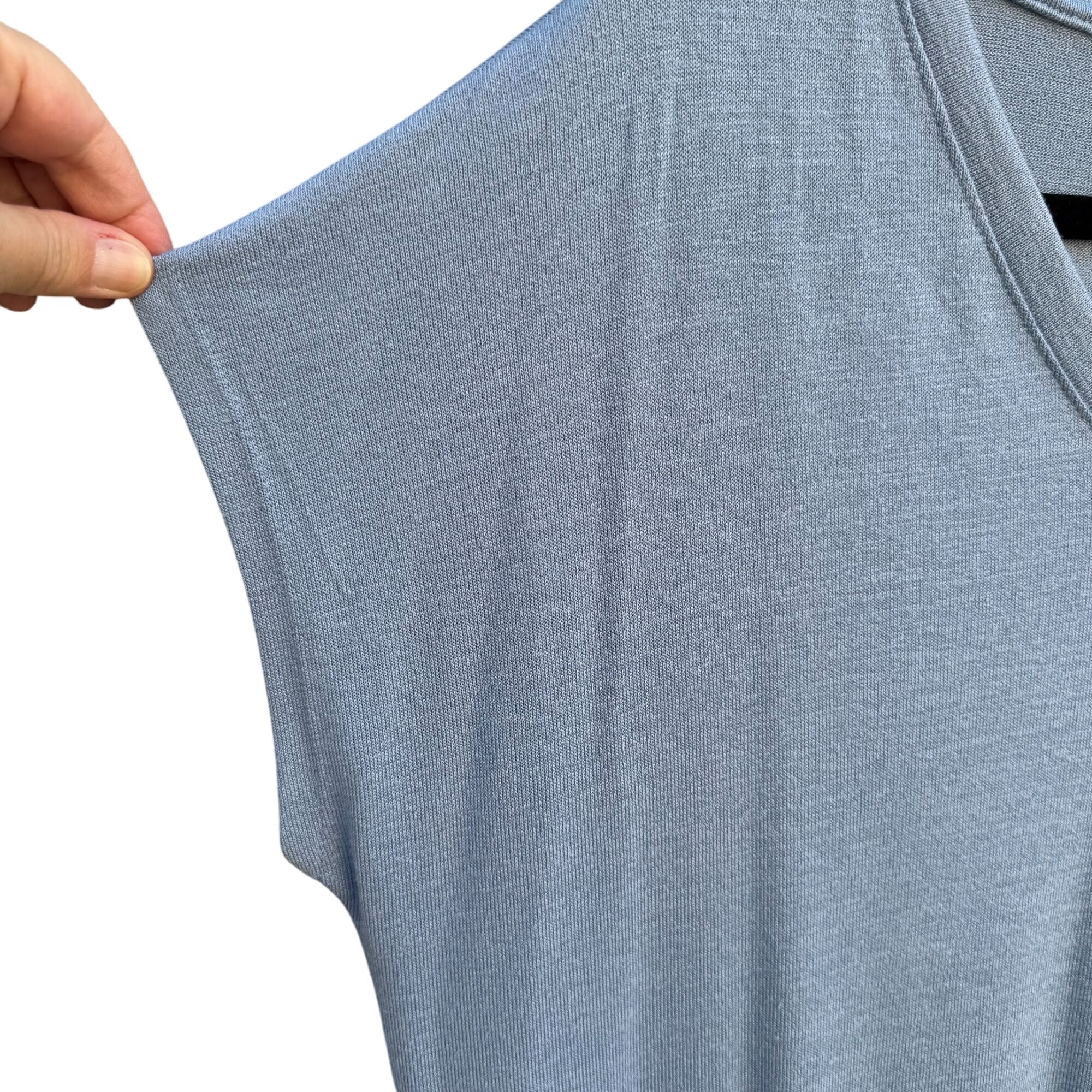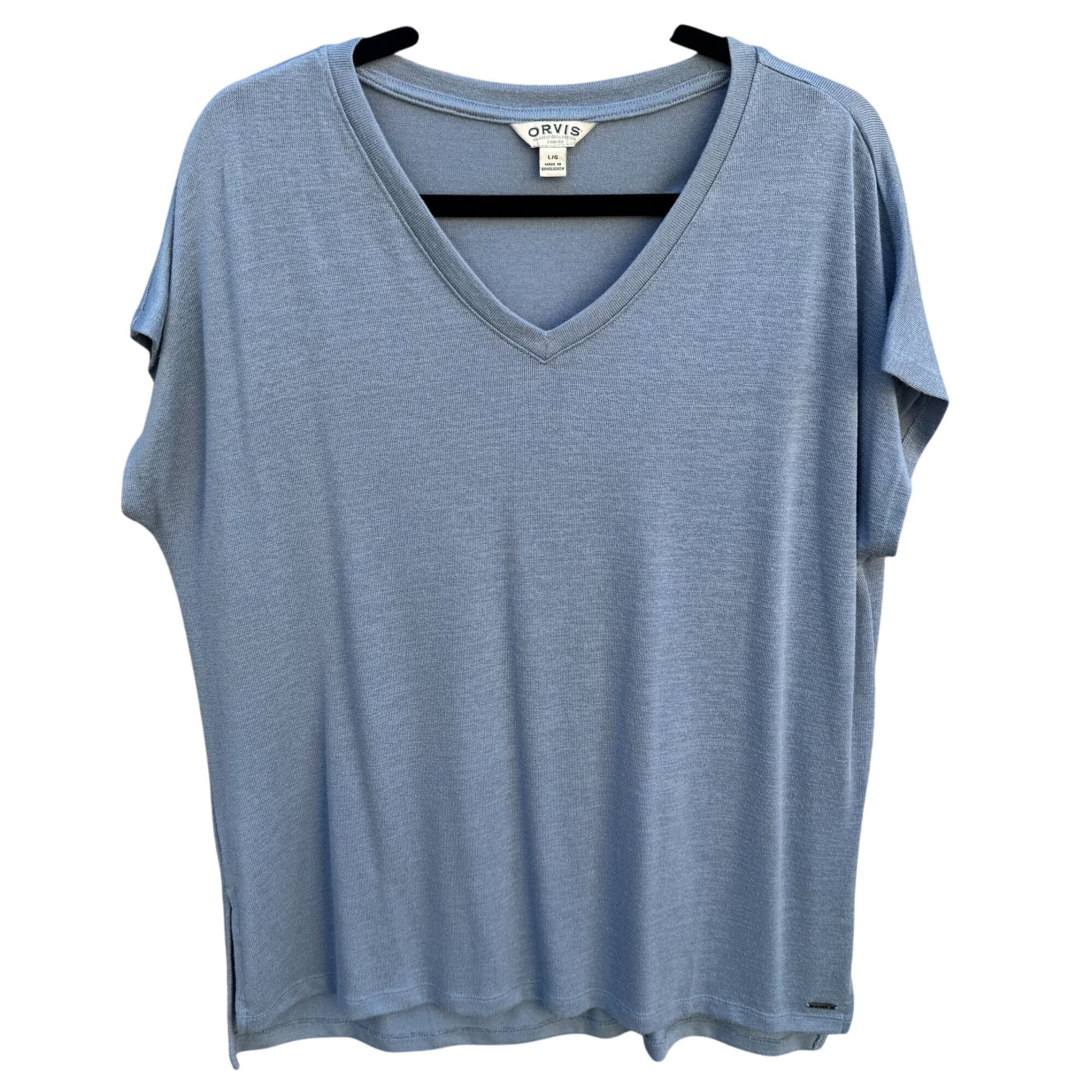 Orvis Classic Collection Womens V-Neck Blue Cotton Short Sleeve Knit Blouse L