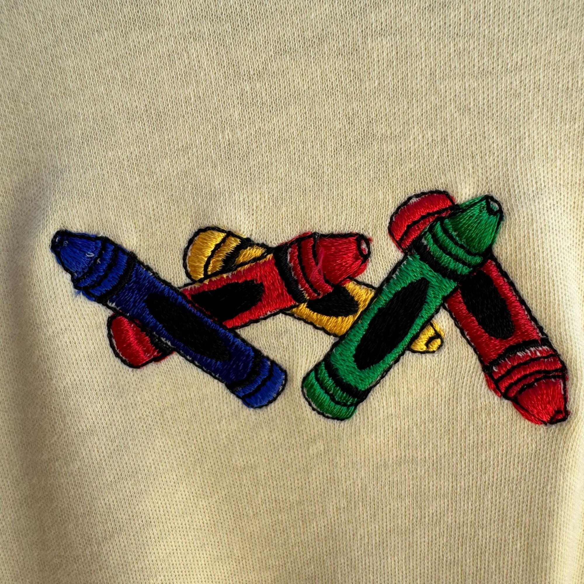 Peanut Butter & Jelly Long Sleeve Crayon Embroidered Light Butter Shirt New M