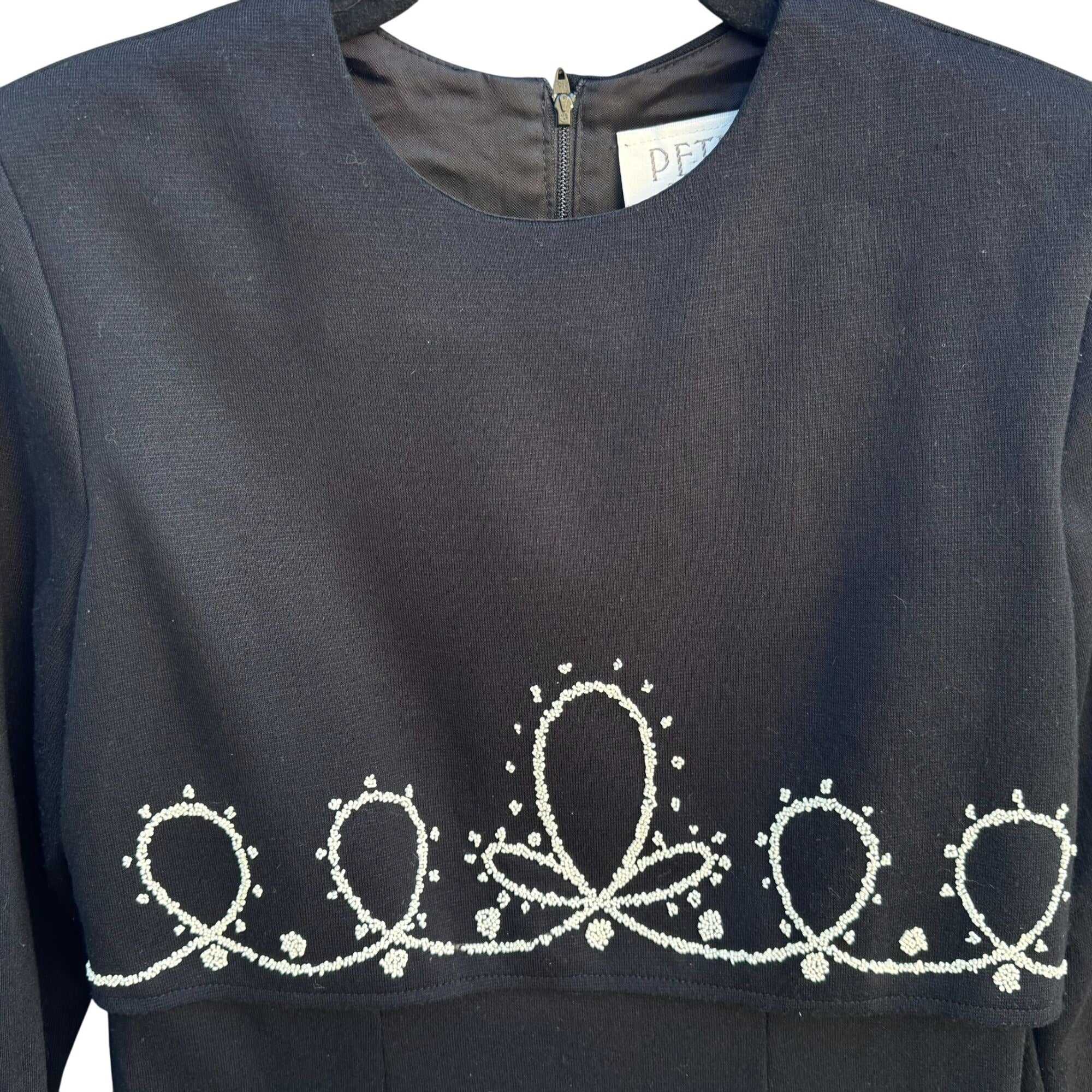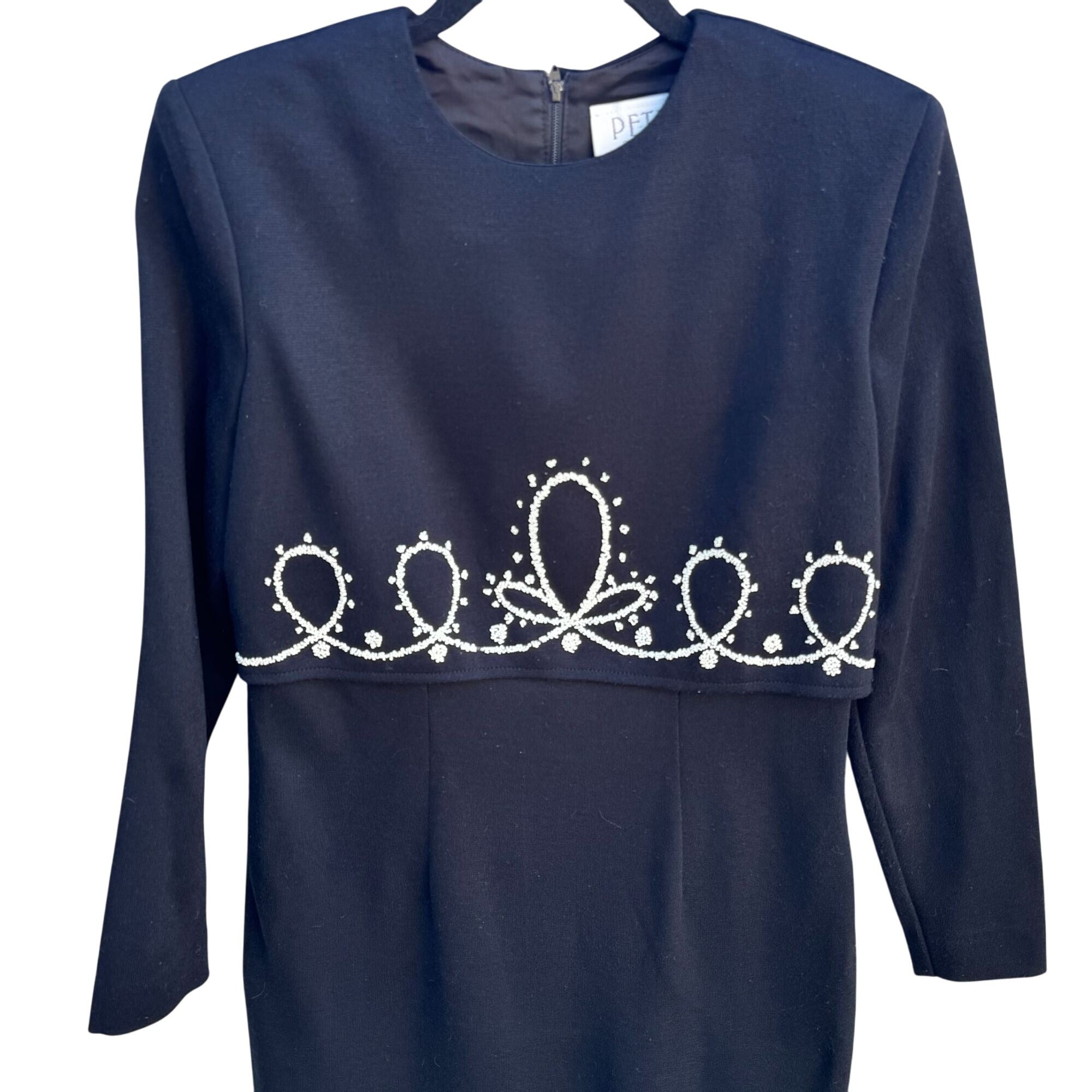 Petite Sophisticates Vintage 80s Black Beaded Long Sleeve Pencil Cocktail Dress 6