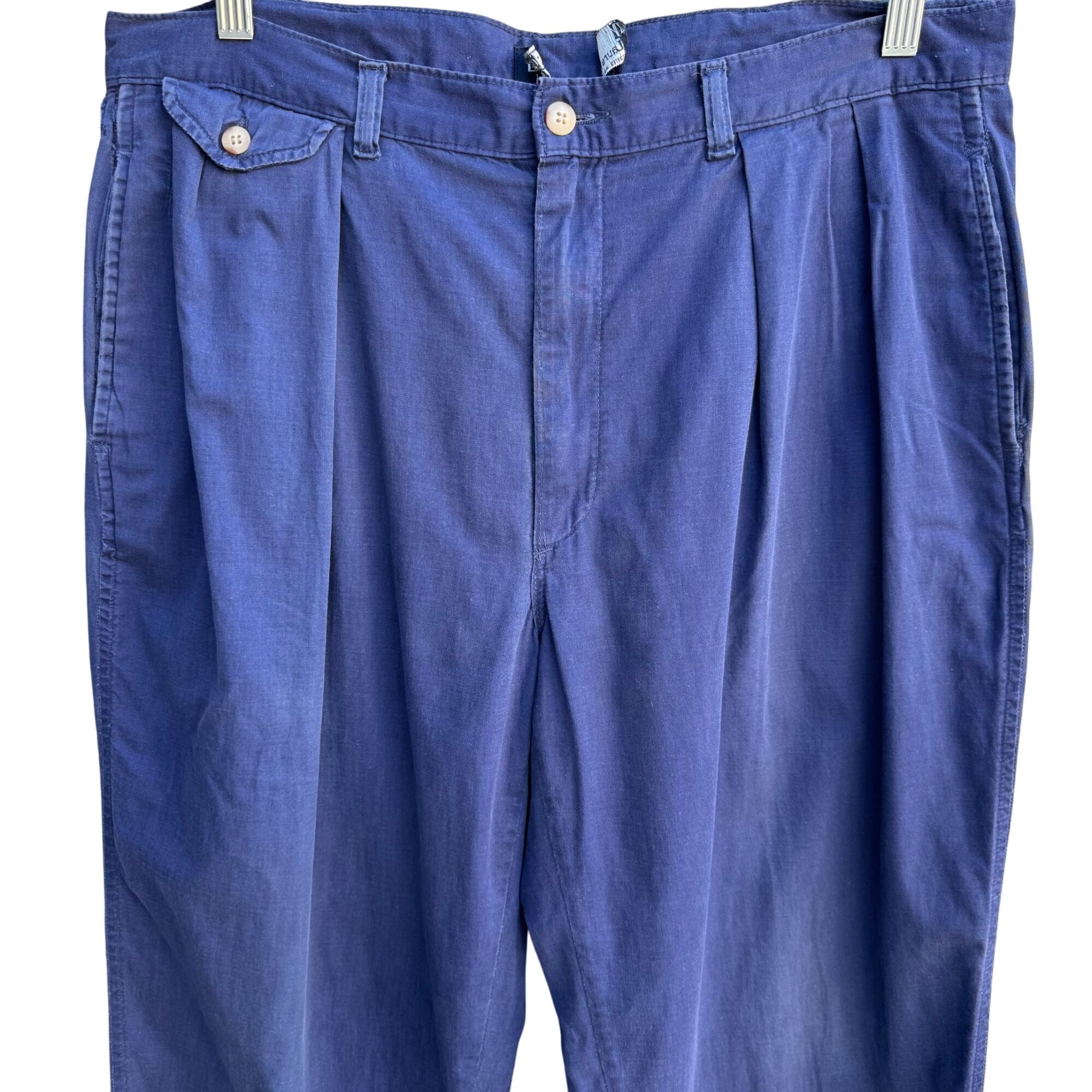 Polo By Ralph Lauren Vintage 80s Preppy Mens Blue Pleated Retro Chino Pants 35