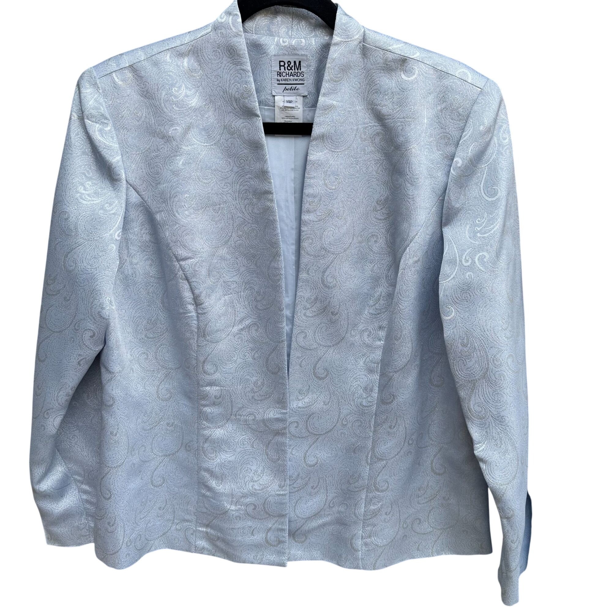 R&M Richards Blue Silver Formal Jacket Full Length Dress Metallic 2 Piece Set 14P