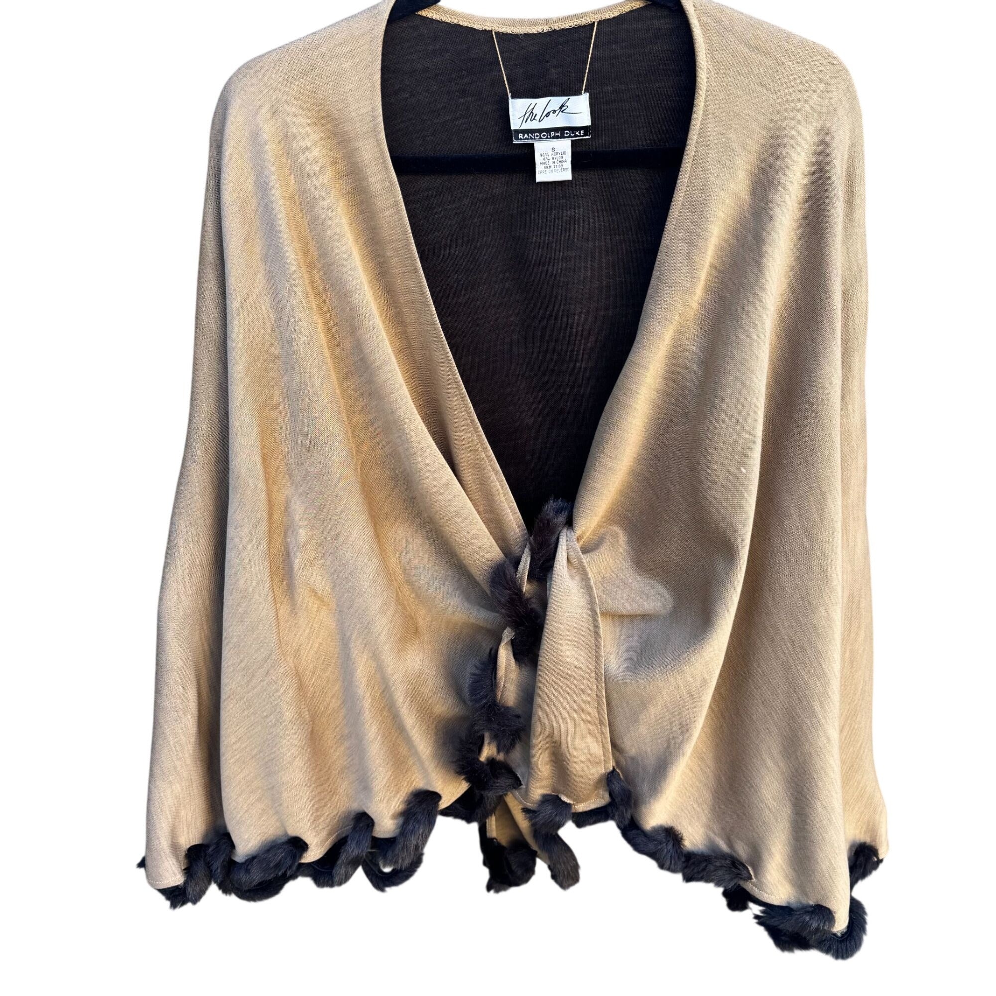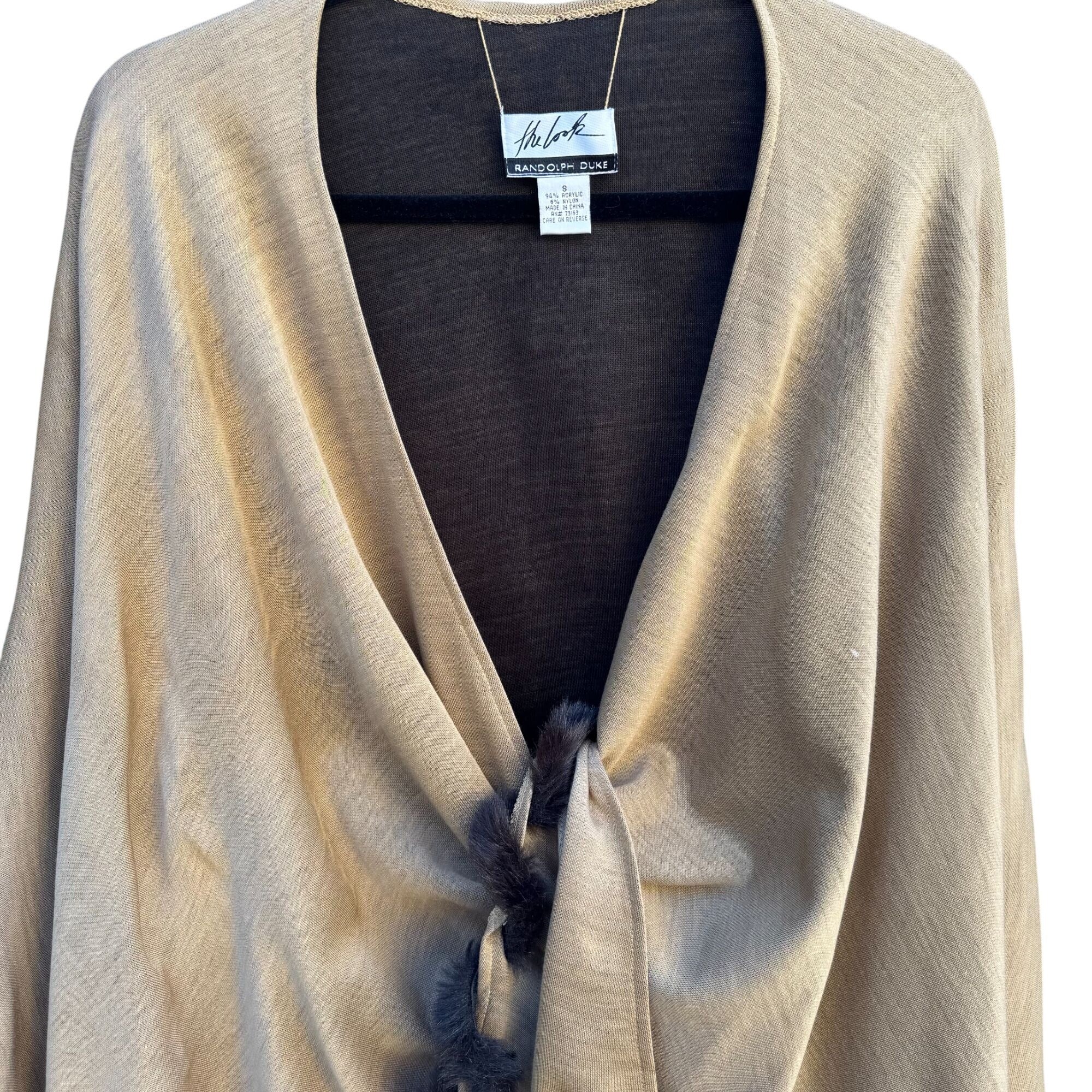 Randolph Duke The Look Womens Vintage Beige Cape Wrap Cardigan Faux Fur Trim OS