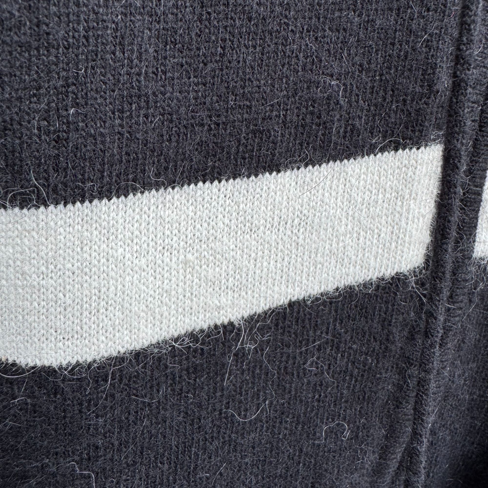 Randolph Duke Womens Black Hooded Striped Knit Cardigan Sweater Elbow Patches S