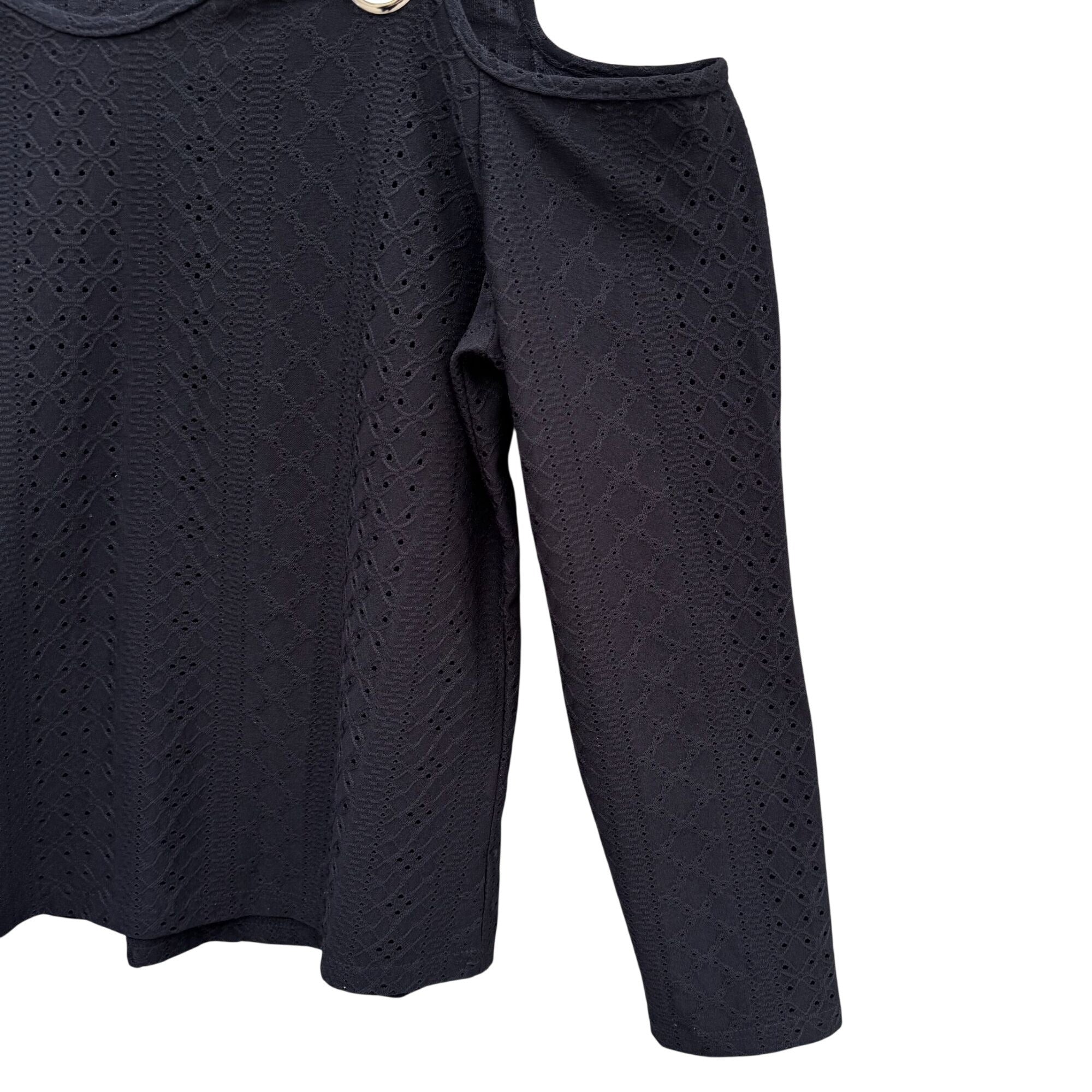 Ranlege Cold Shoulder Black Top Gold Ring Accents Womens XL Lace Crochet Eyelet