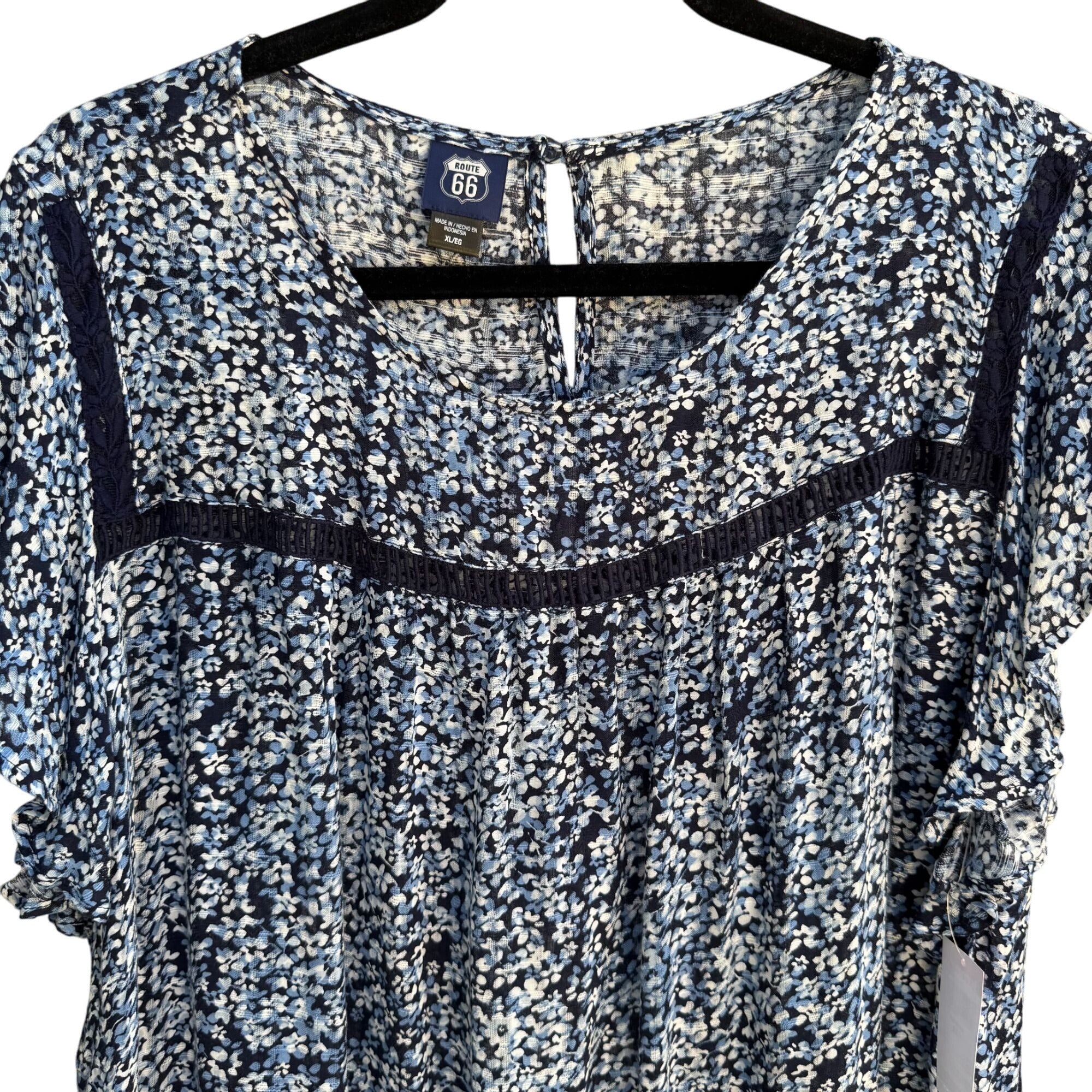 Route 66 Kmart Vintage Womens Blue Floral Flutter Sleeve Boho Shirt Blouse New XL