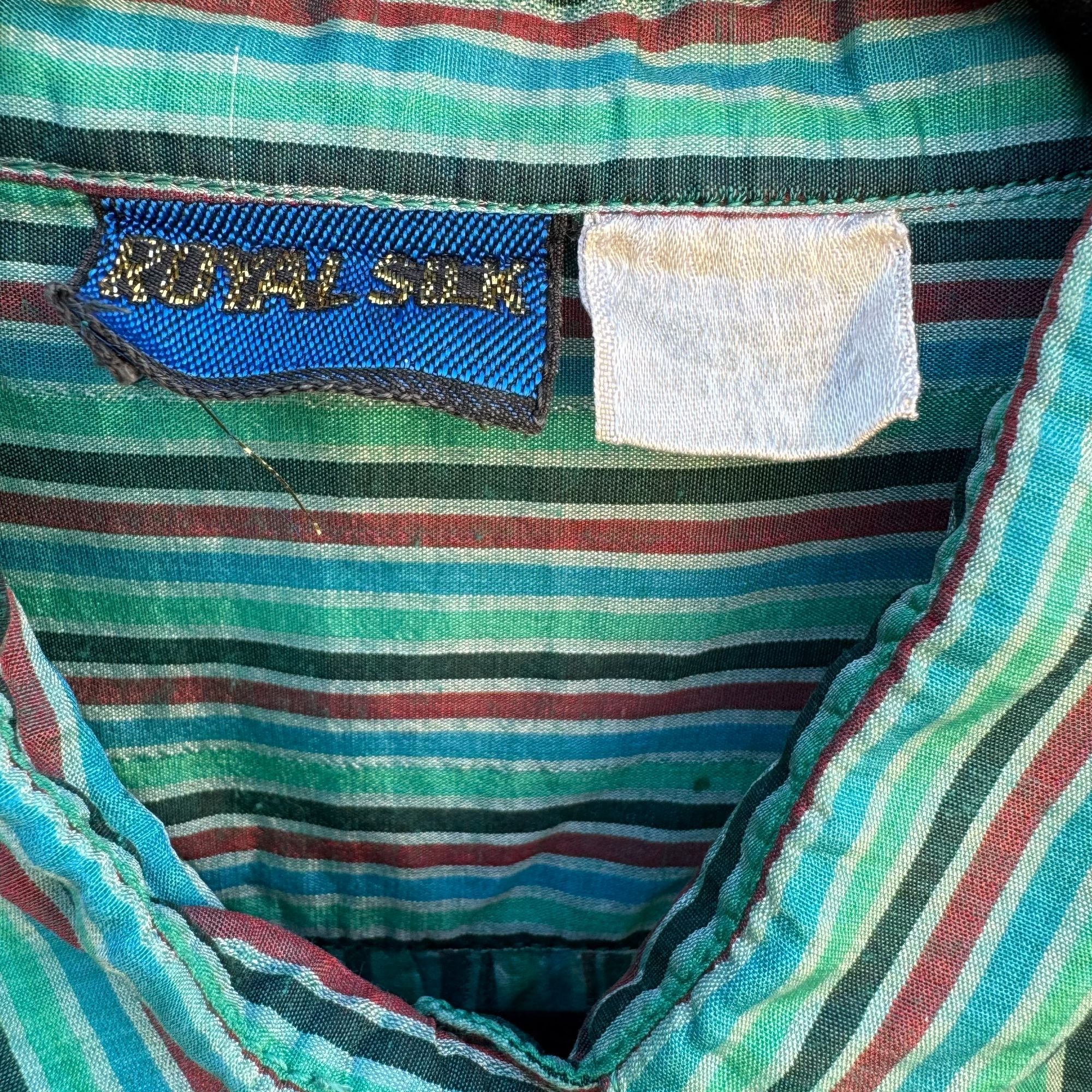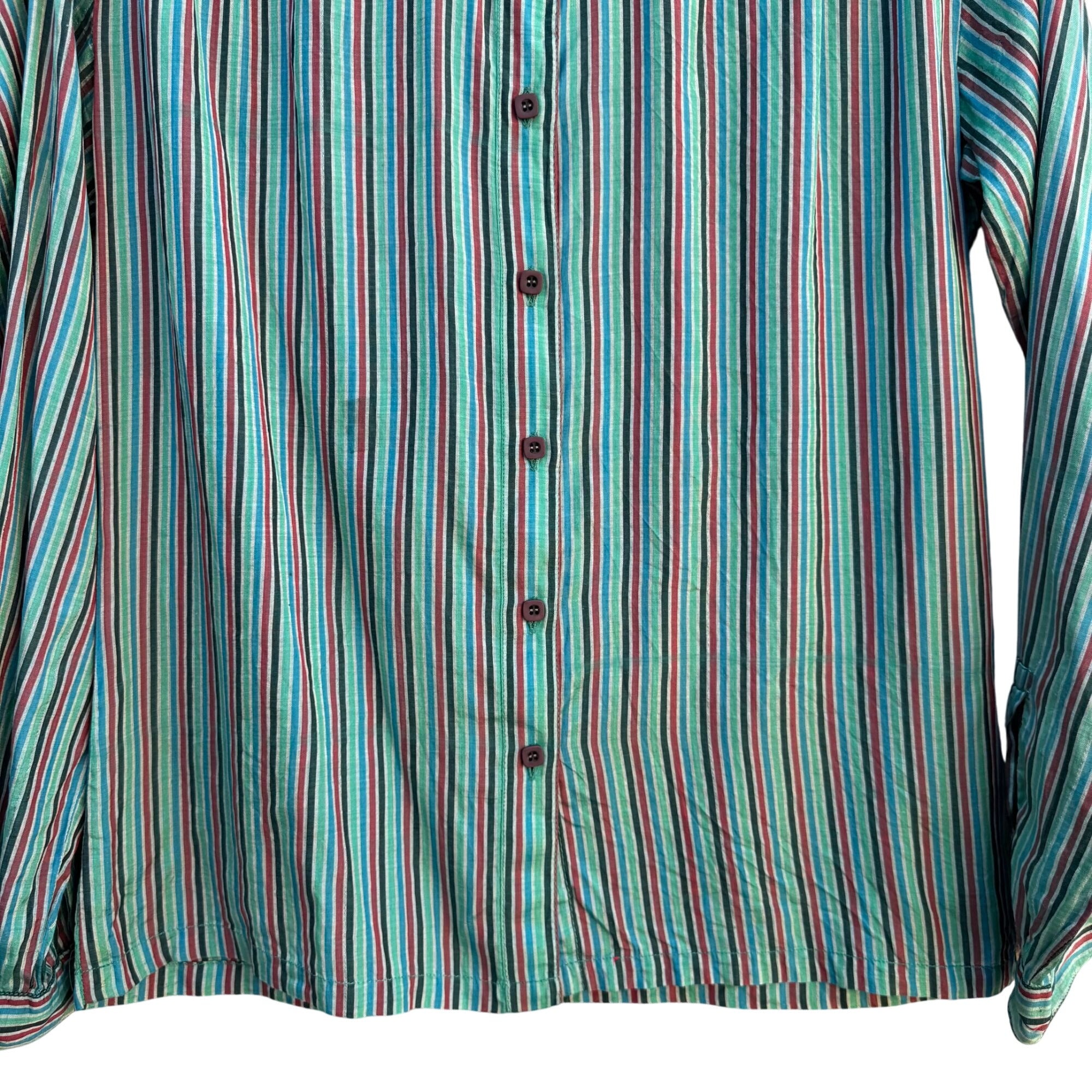 Royal Silk Vintage 70s Womens Retro Striped Button-Up Long Sleeve Shirt Blouse L