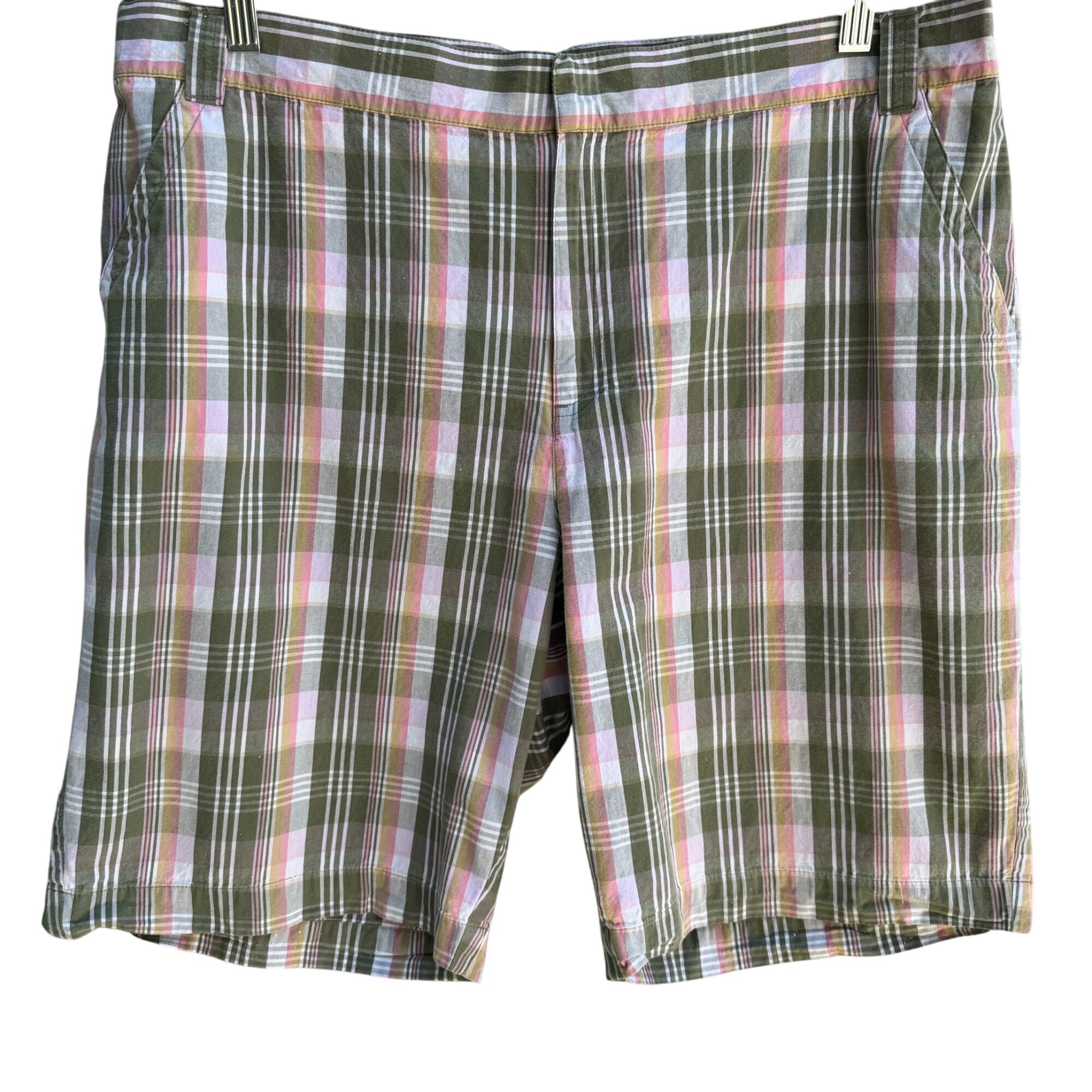 Sag Harbor Womens Green Pink Plaid Cotton Golf Preppy Bermuda Flat Front Shorts 16
