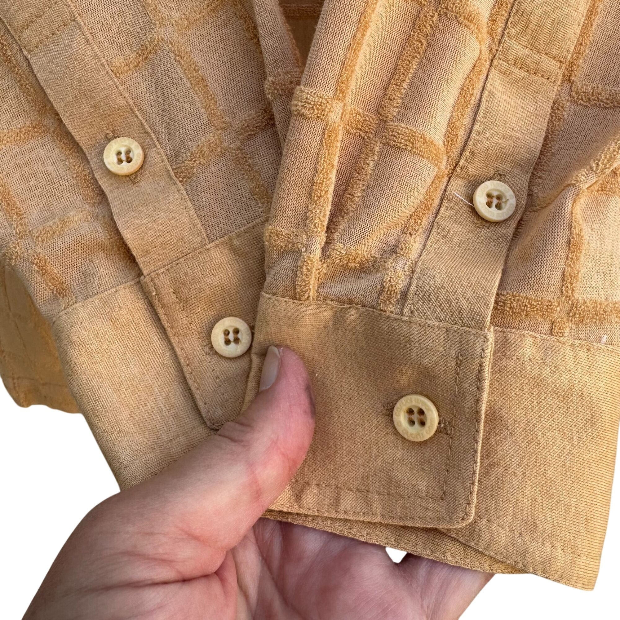 Serano Vintage Mens Tan Long-Sleeve Textured Grid Terrycloth Pocket Polo Shirt