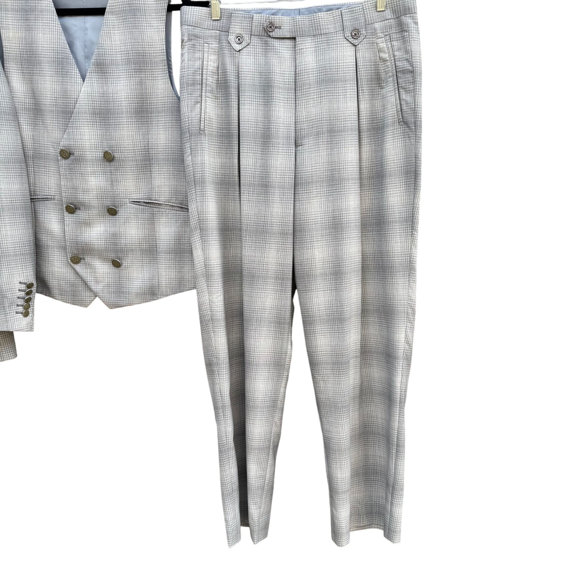 Sergio Valentino Firenze Italian Super 150s Wool Mens 3-Piece Gray Plaid Suit