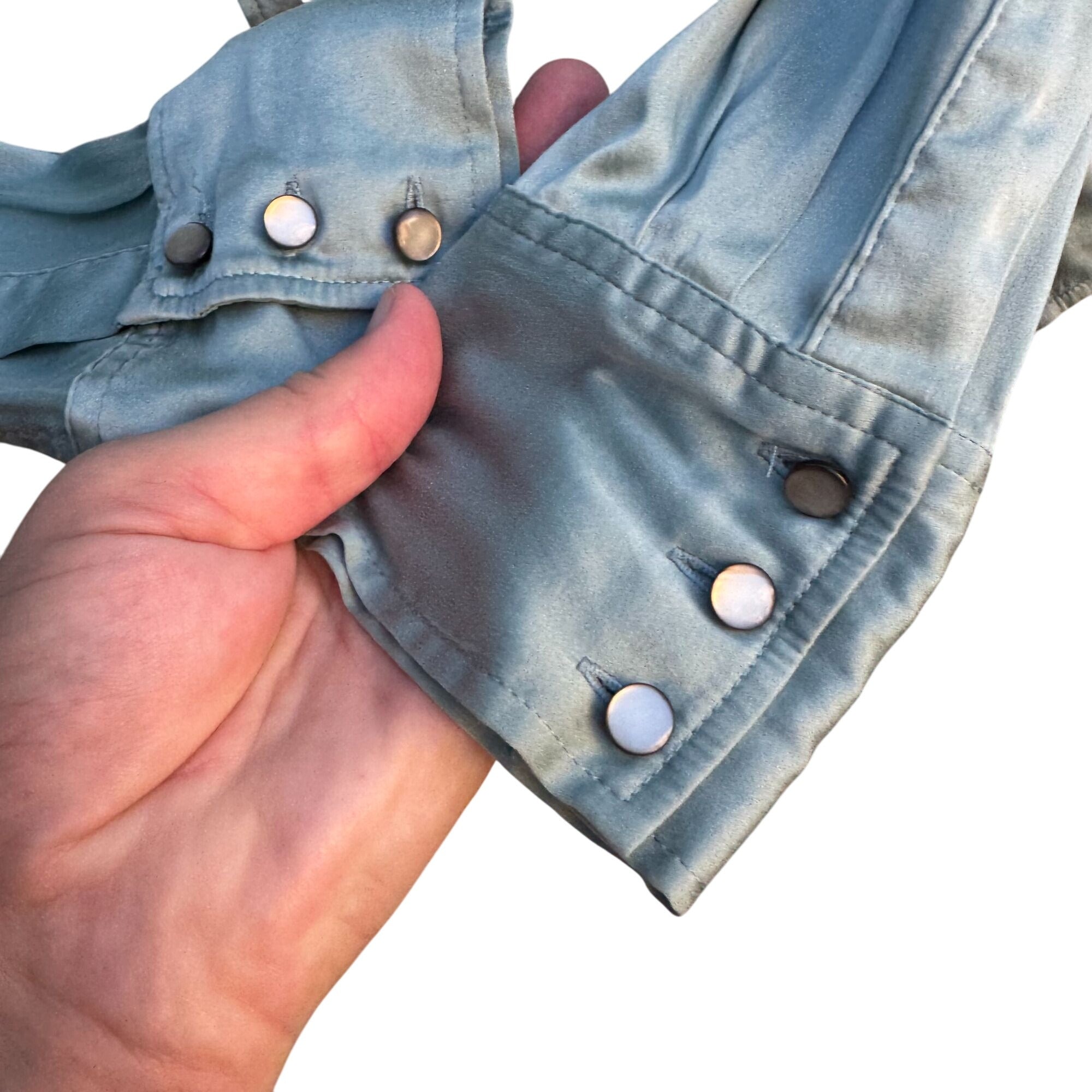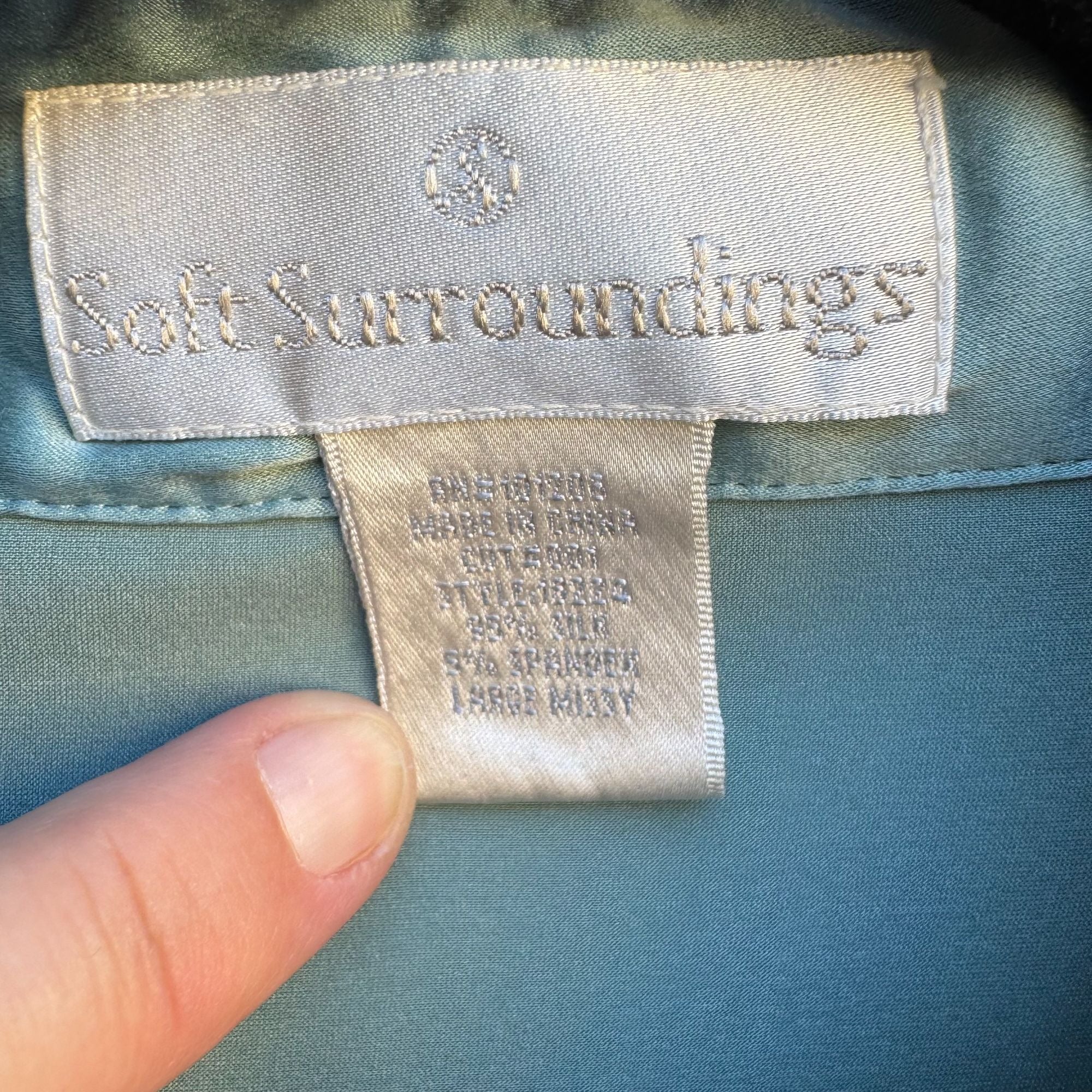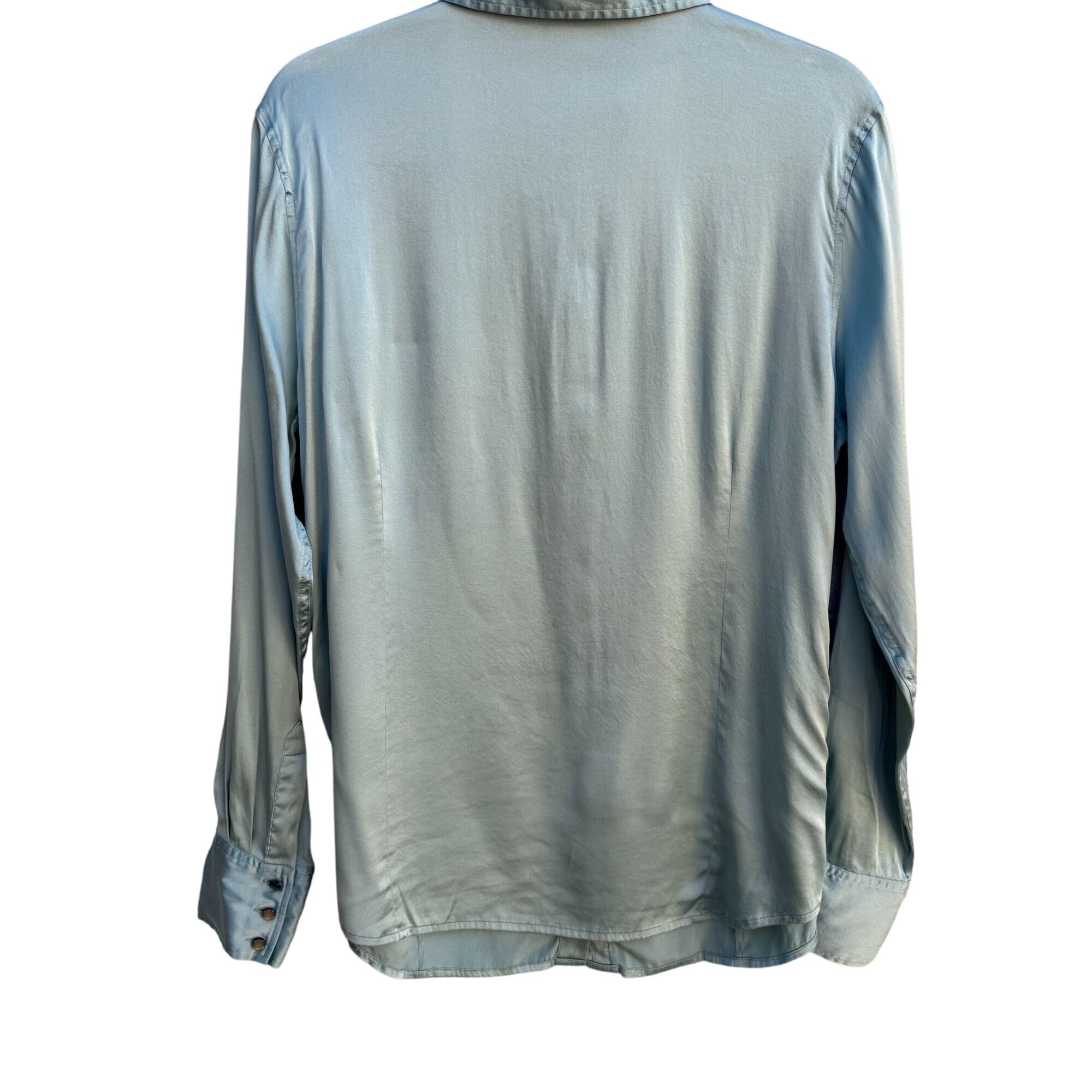 Soft Surroundings Womens Silk Pearlized Button Long Sleeve Mint Shirt Blouse L