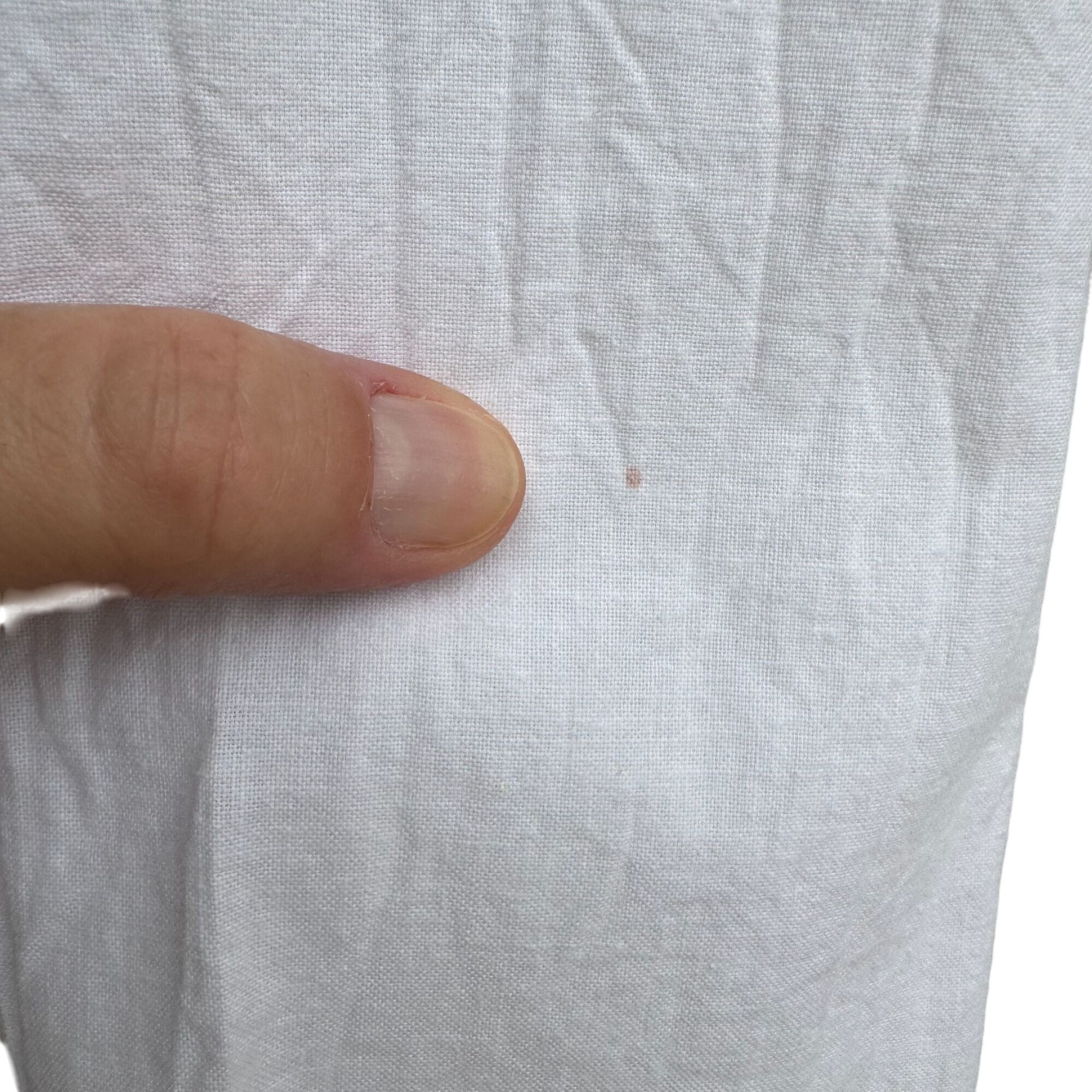 Small stain near the front button, minor and barely noticeable.