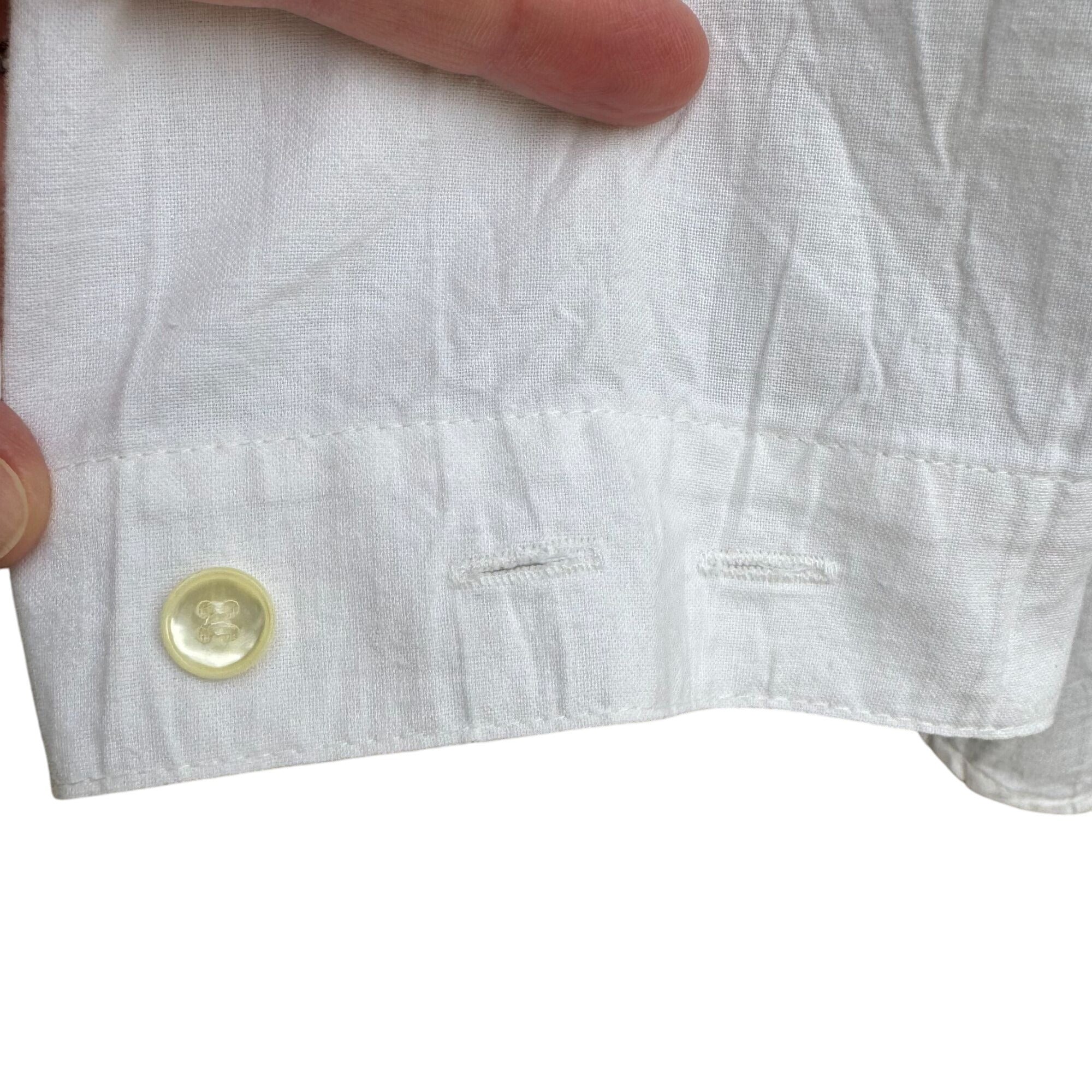 SportTimer Vintage Womens Band Collar Long Sleeve Linen Style Button-Up Shirt XL