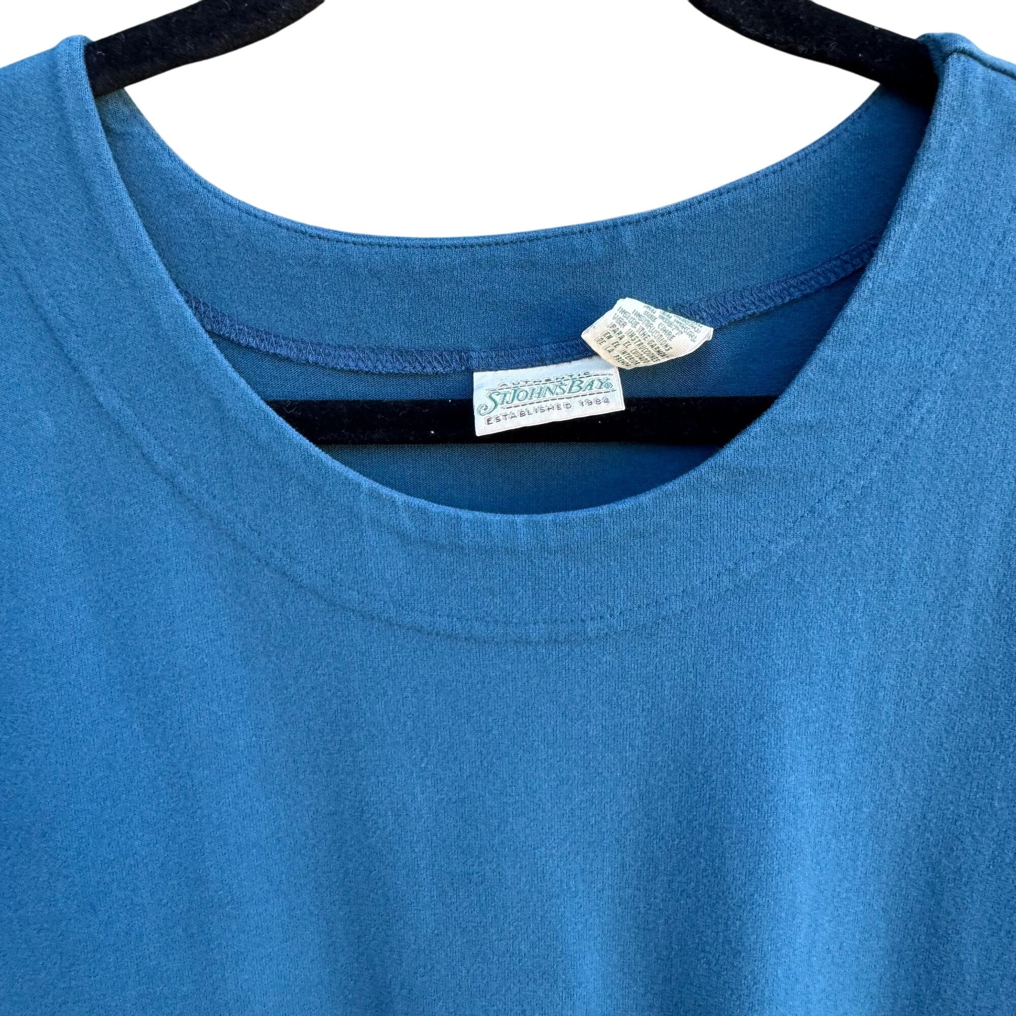 St Johns Bay Vintage Prairie 3/4 Sleeves Empire Waist Blue Pockets Midi Dress 16