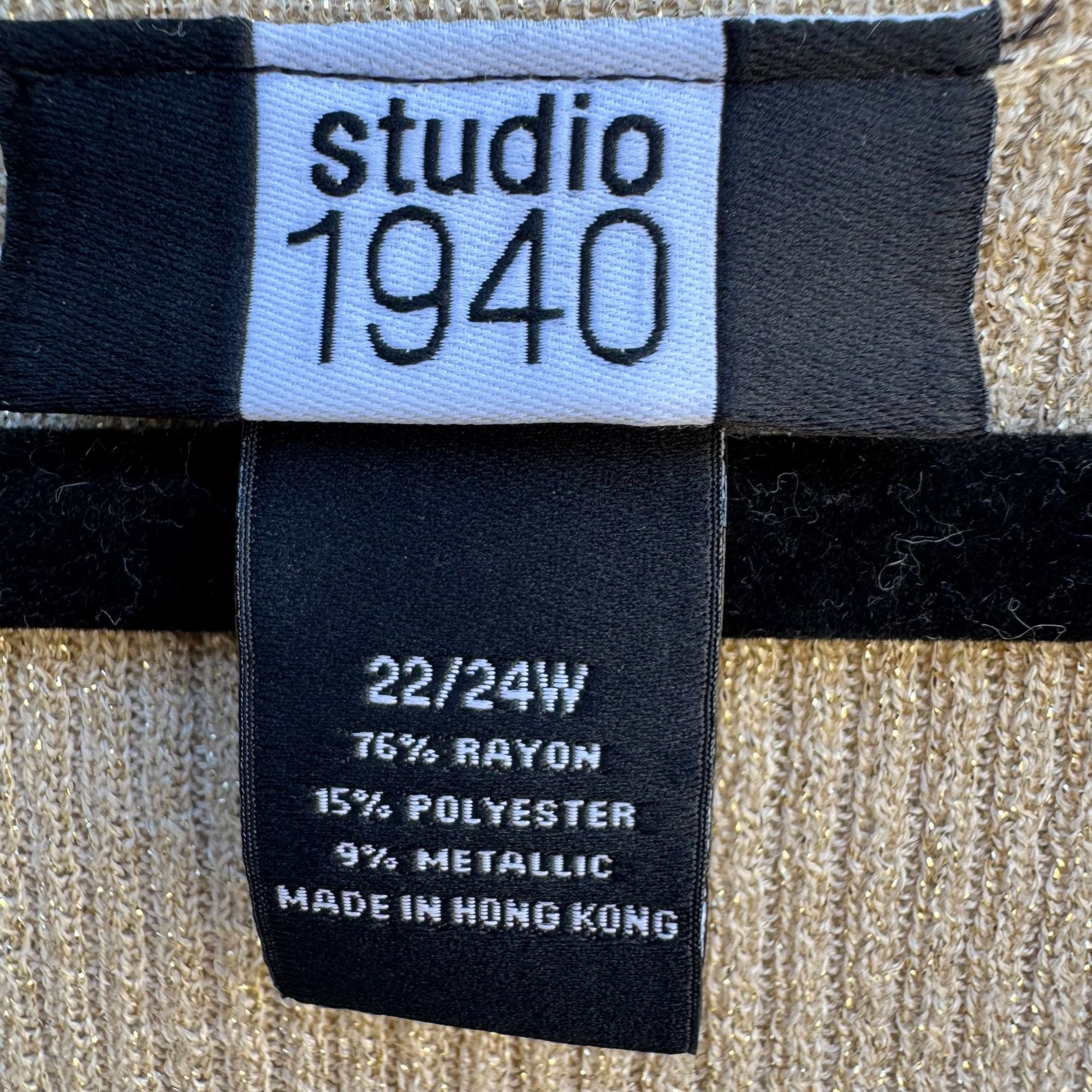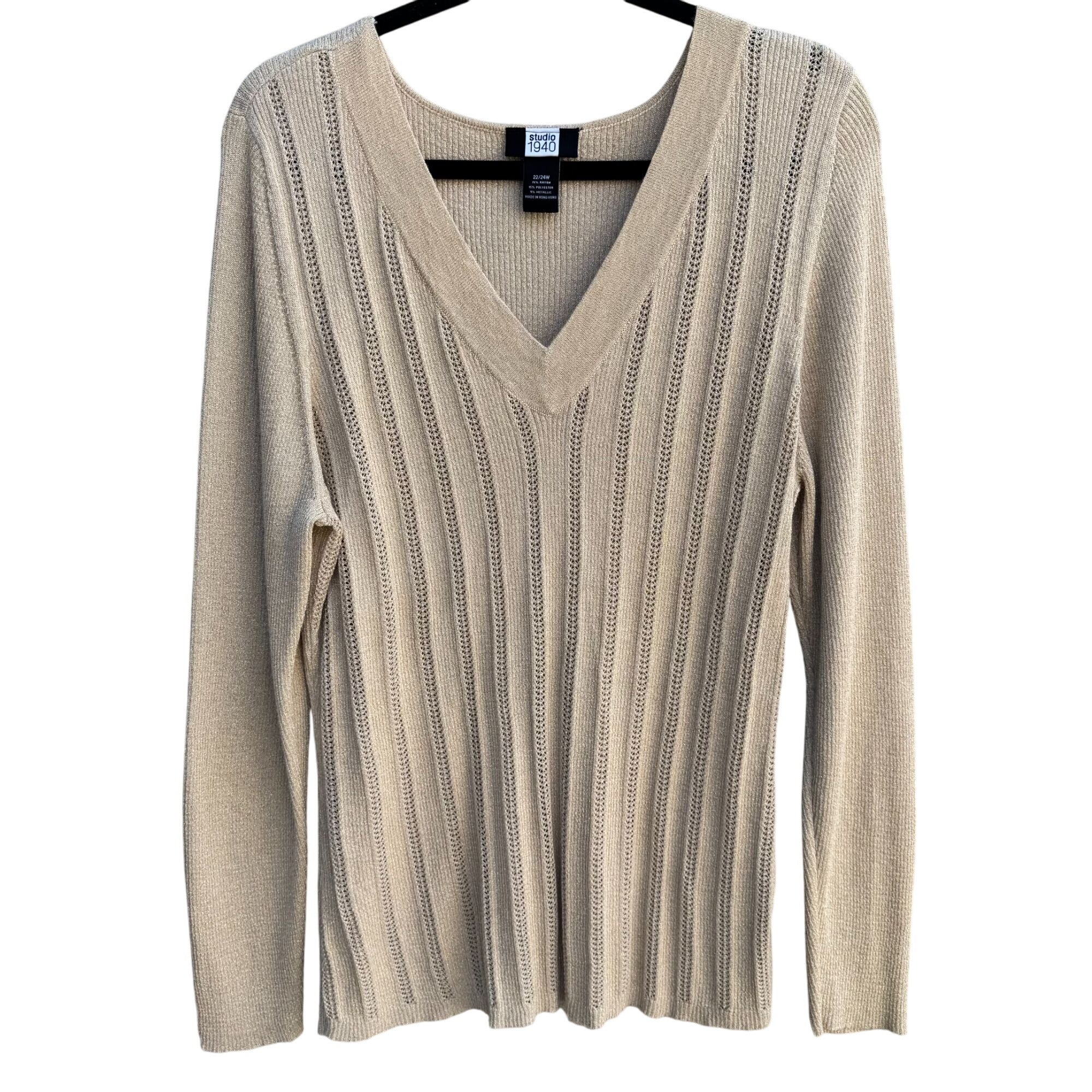 Studio 1940 Womens Beige Gold Metallic Open Knit Deep V-Neck Sweater 22/24W