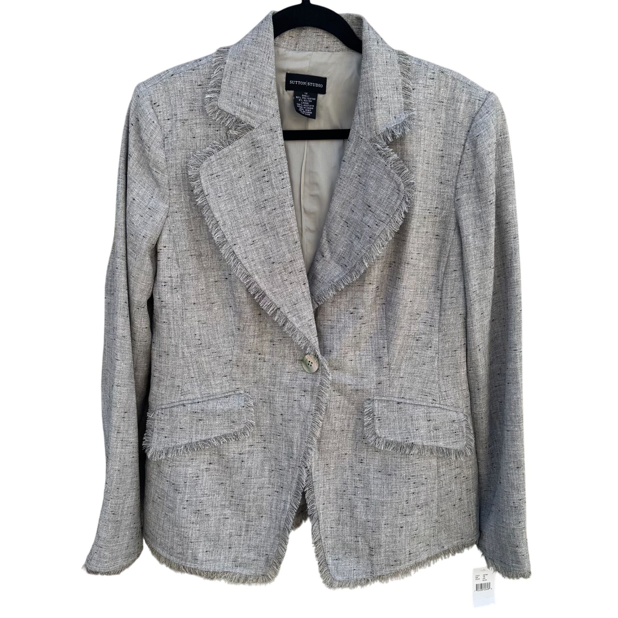 Sutton Studio Womens Frayed Tweed Gray Single Button Closure Blazer Jacket New 14