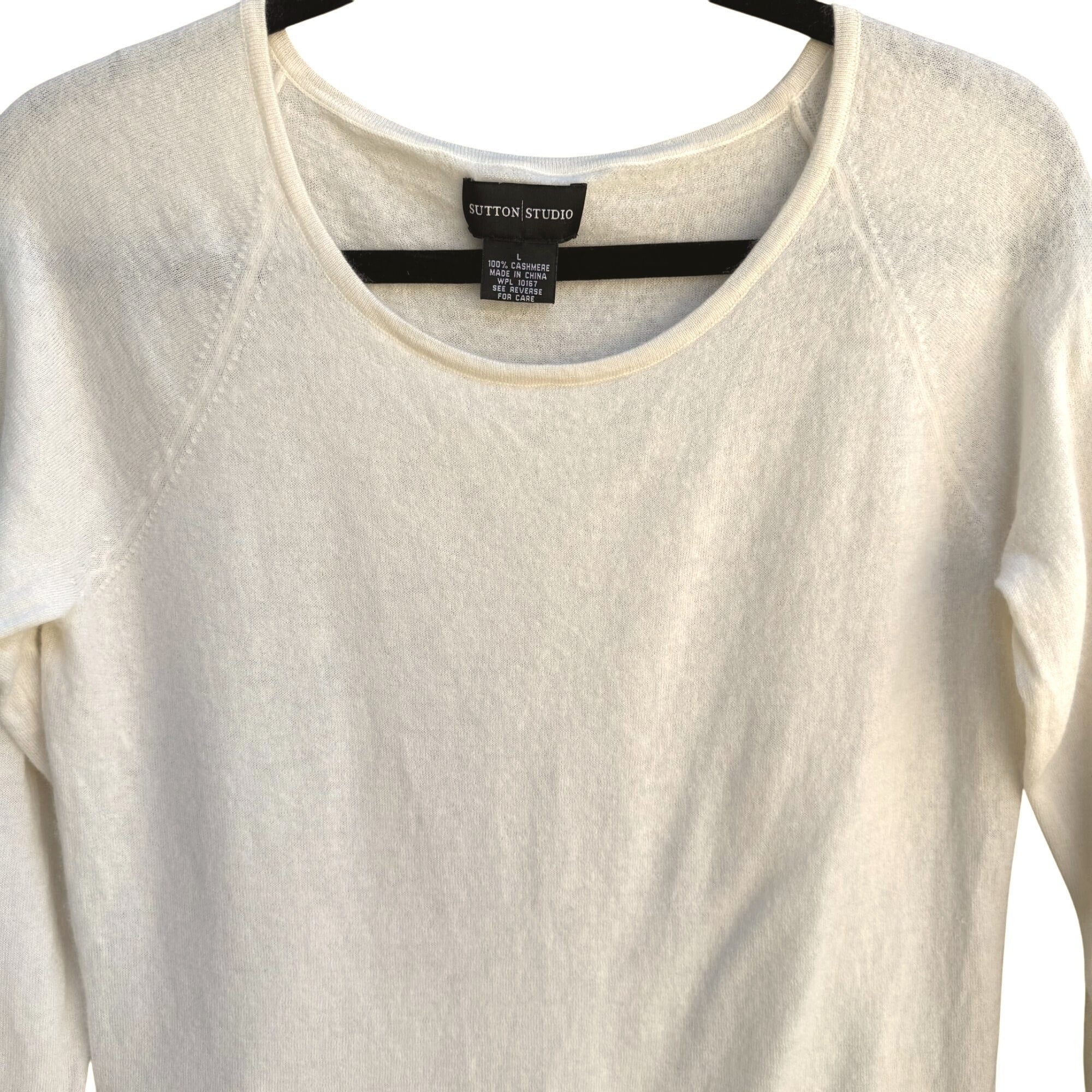 Sutton Studio Womens White Cashmere 3/4 Sleeve Buttoned Cuffs Knit Sweater L