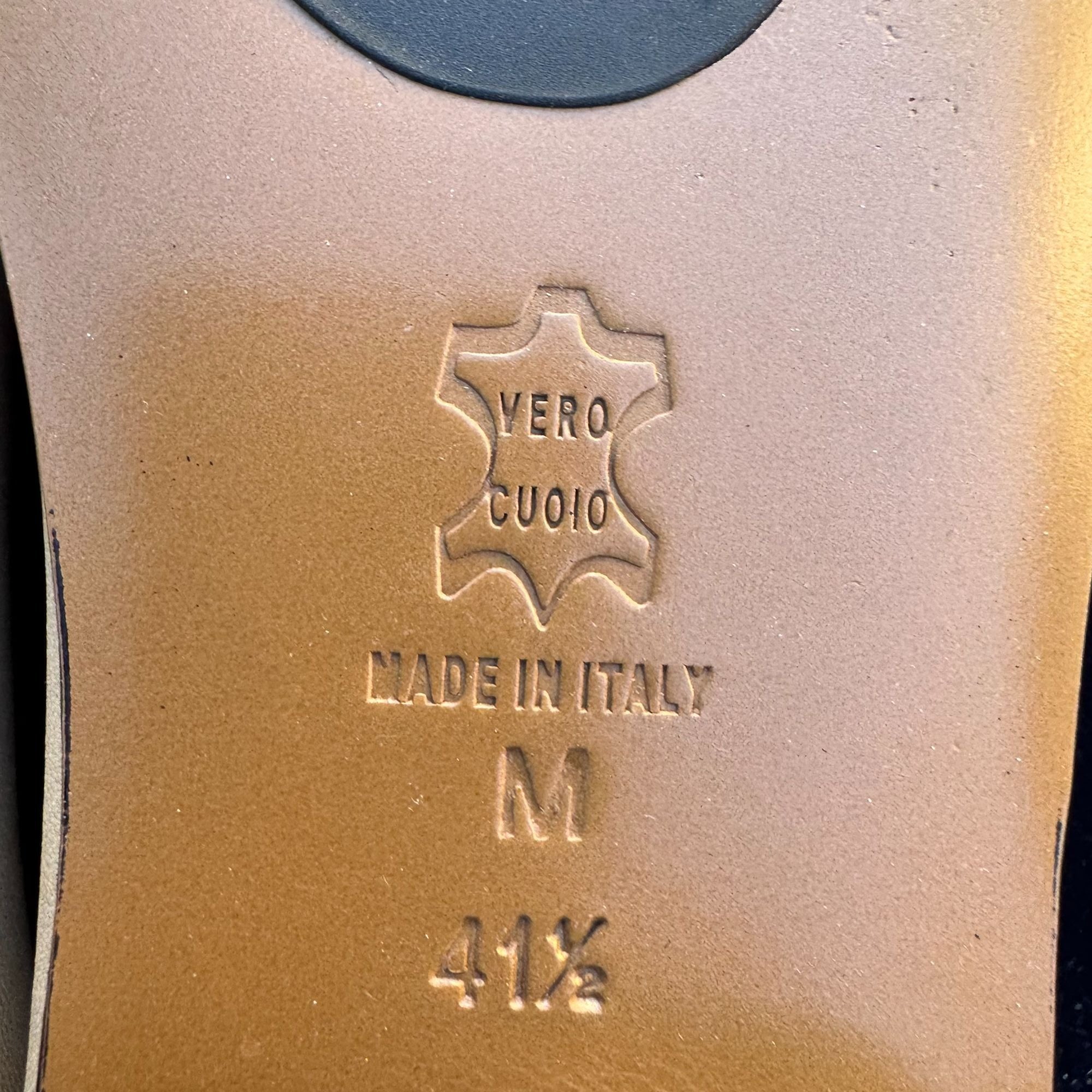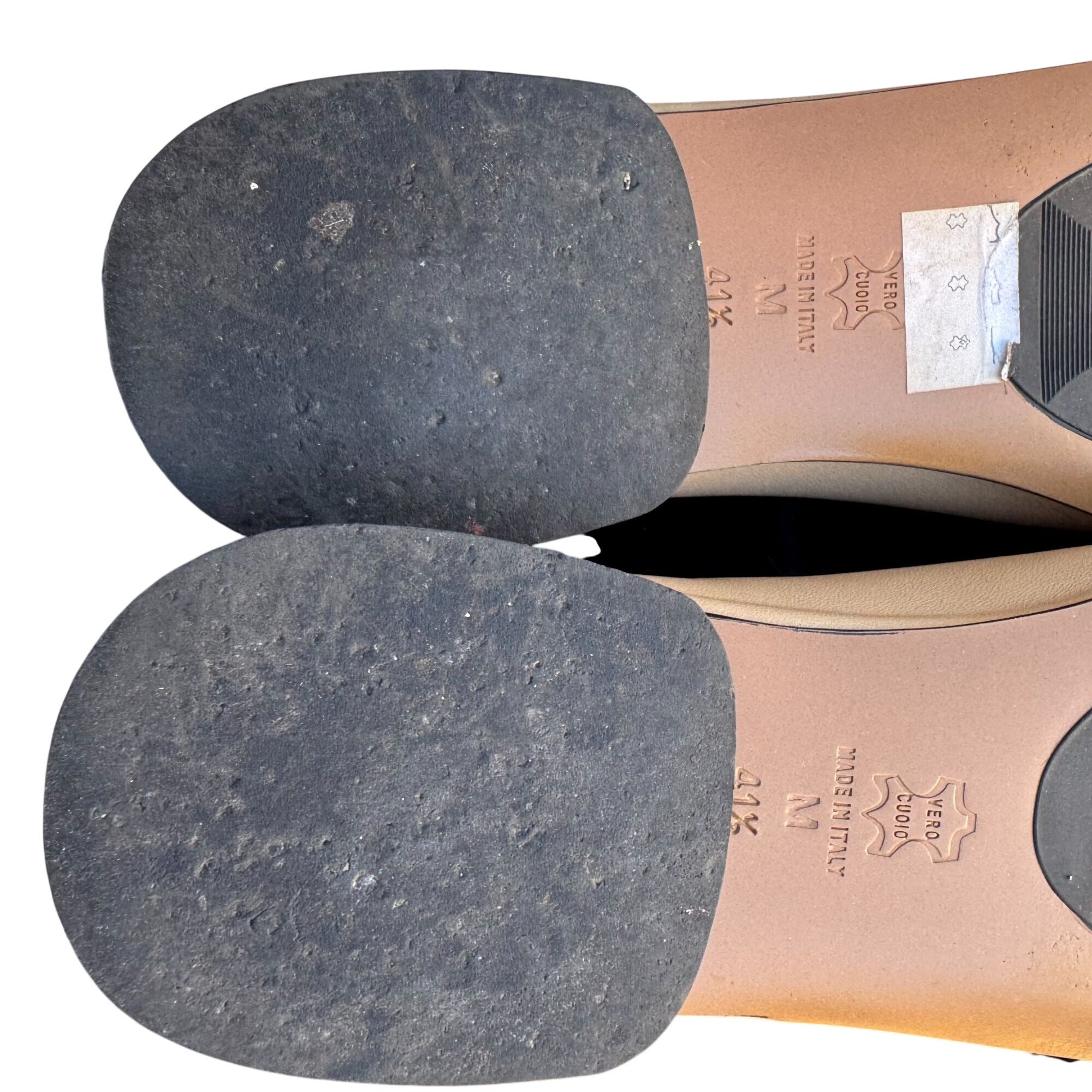 Minor scuff marks on both toes and faint discoloration on the upper sides. Measurements: Heel height = 1 inch.