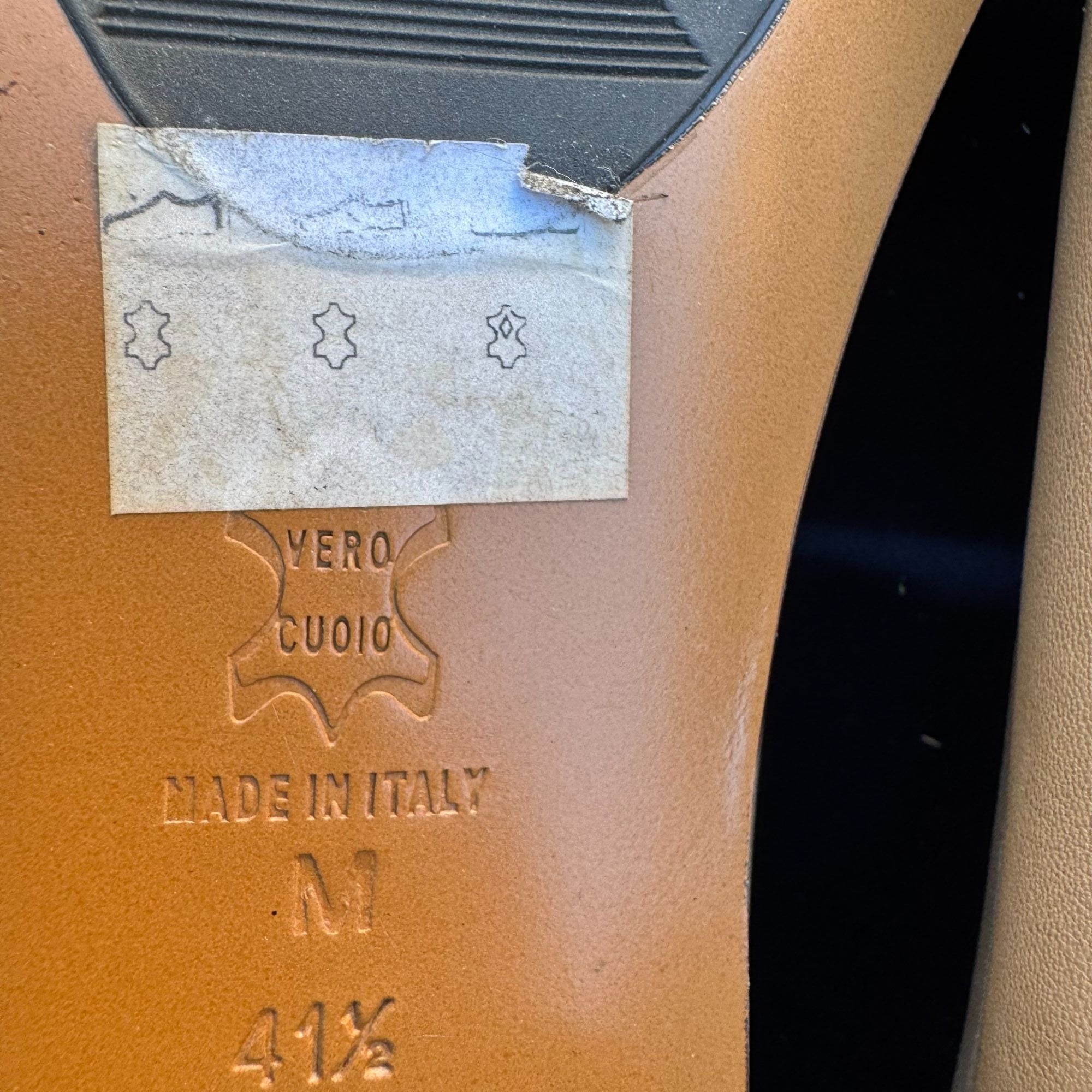 • Beige leather upper with unique stitching